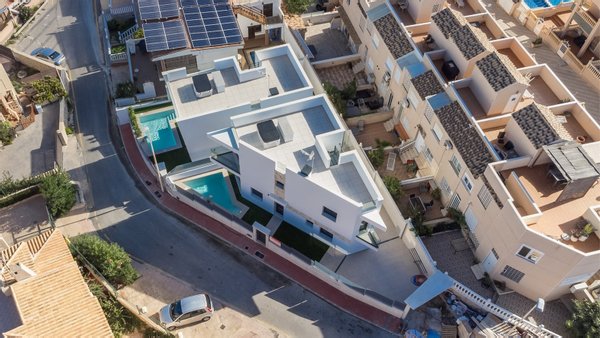 Die Villa verfügt über einen privaten Salzwasser-Swimmingpool, eine Sonnenterrasse mit Jacuzzi und Barbereich, einen eigenen Parkplatz auf dem Grundstück, eine Vorinstallation für eine Klimaanlage, Fußbodenheizung in allen Bädern, Einbauschränke in allen Schlafzimmern, elektrische Jalousien, LED-Beleuchtung innen und außen und eine Video-Gegensprechanlage. Ein optionales Extra ist das Möbelpaket, das 16.900€ inklusive IVA kostet.