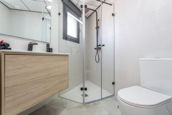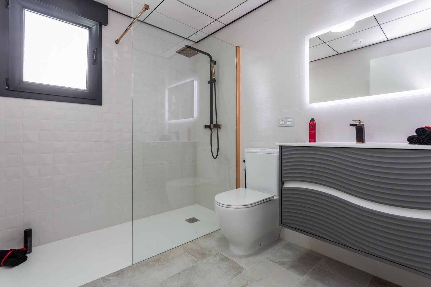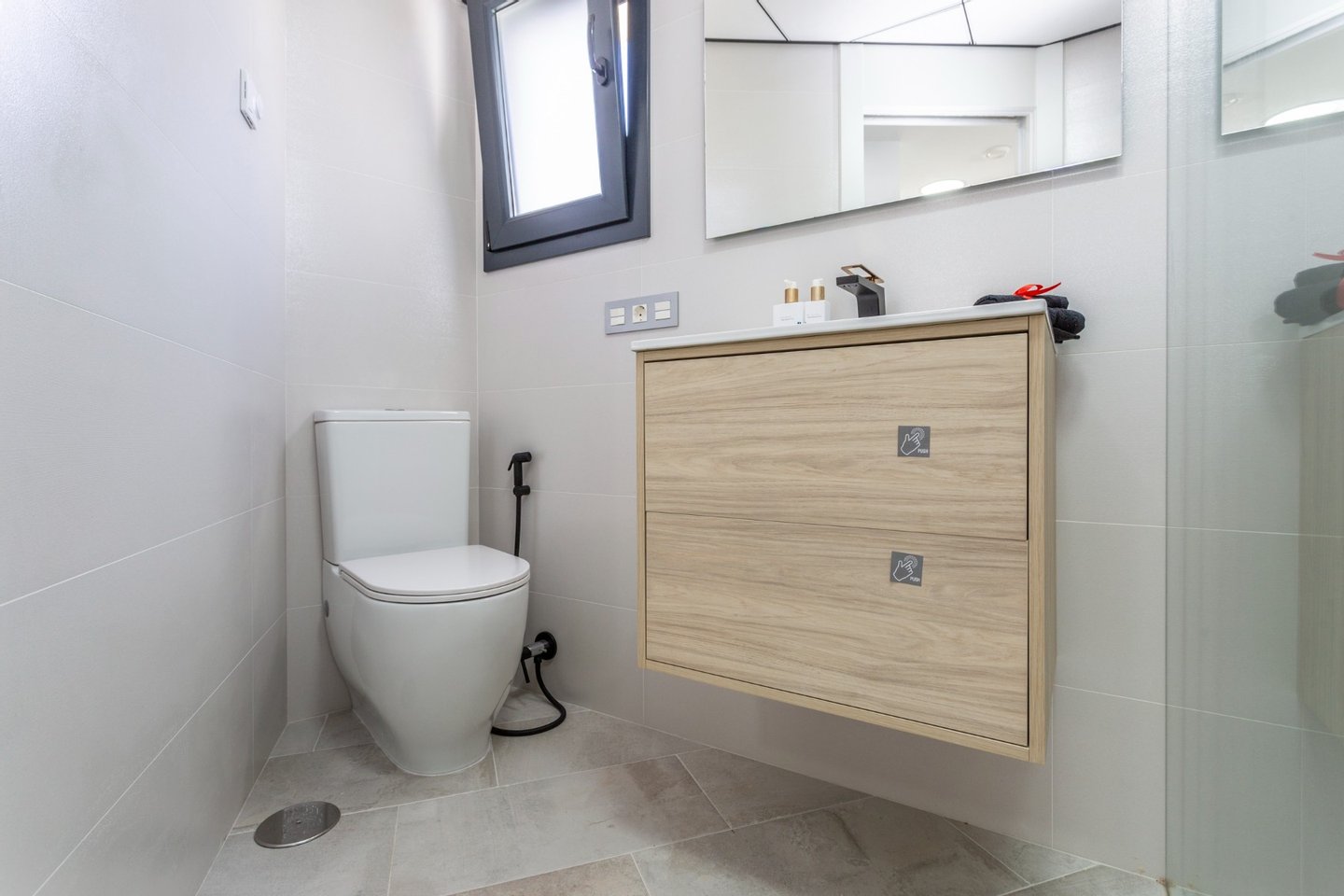 Diese moderne Villa ist mit viel natürlichem Licht, mit klarem Meerblick und großen Räumen gestaltet. Der Grundriss der Villa besteht aus einem geräumigen, offenen Wohn- und Essbereich mit amerikanischer Küche, einem Schlafzimmer mit Doppelbett und einem Gästebad auf der Erdgeschossebene. Die Innentreppe führt Sie in den ersten Stock mit zwei weiteren Doppelschlafzimmern, beide Schlafzimmer mit eigenem Bad und es gibt Zugang zu einer Außentreppe, die Sie auf die große Dachterrasse von 55m2 mit herrlichem Meerblick führt. Das Anwesen verfügt auch über einen großen Keller von 58m2, die vollständig mit einem Bad abgeschlossen ist. Das Untergeschoss bietet zusätzlichen Lebensraum für weitere Schlafzimmer, Lounge-Bereich, Fitnessraum, Weinkeller, usw.. und hat viel natürliches Licht von den großen Fenstern.