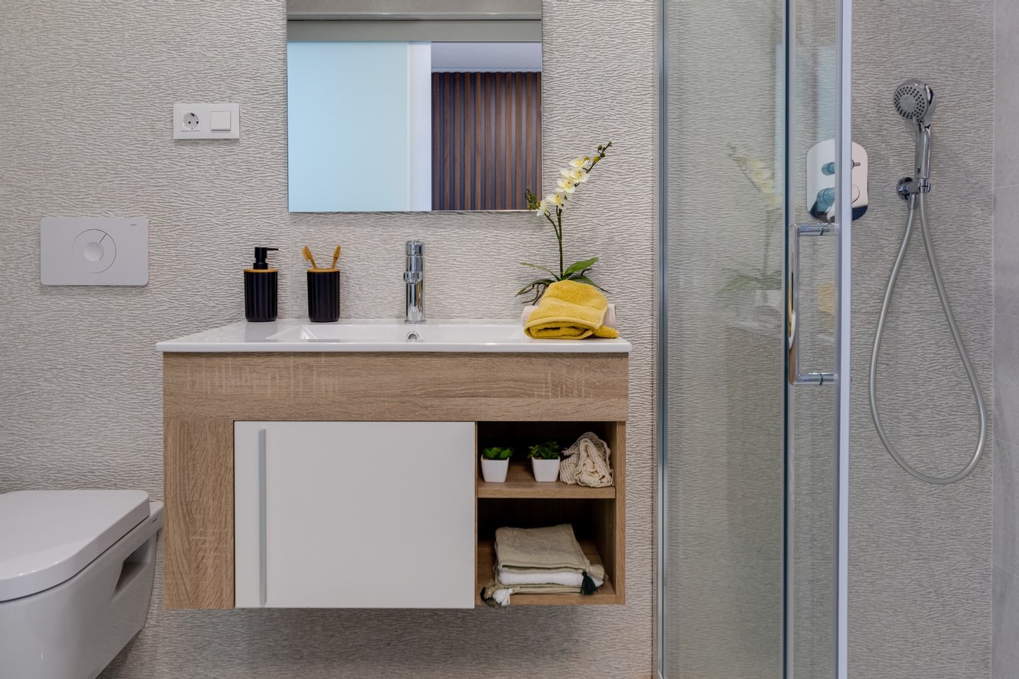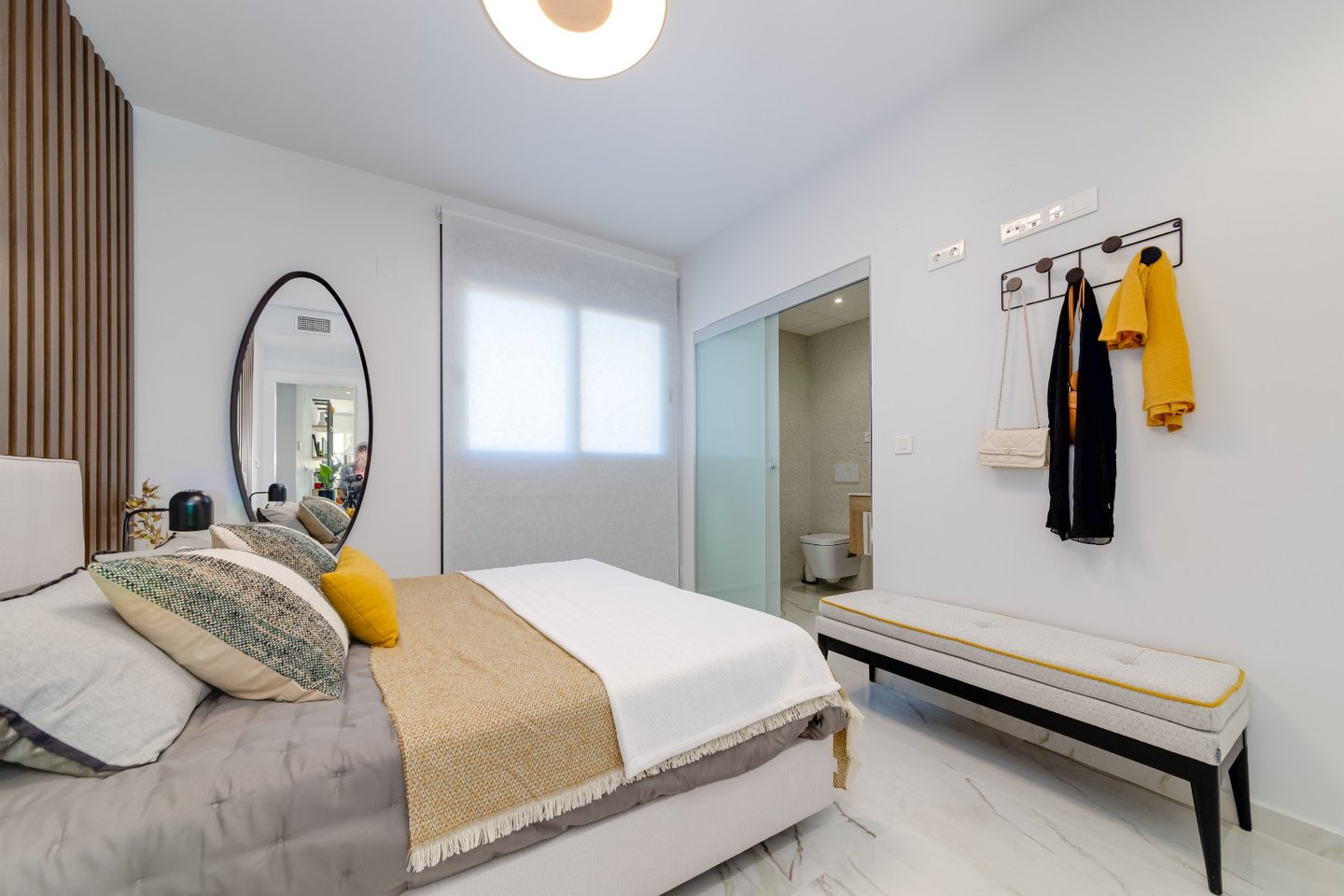 Der Komplex besteht aus 144 Luxuswohnungen, die in 10 Blöcke mit großzügigen Terrassen aufgeteilt sind. Alle Wohnungen verfügen über 2 oder 3 Schlafzimmer und 2 Bäder, wobei die Wahl zwischen Erdgeschoss, erstem Stock, zweitem Stock und Penthouse mit privatem Solarium besteht. Die Innenausstattung besteht aus einem Eingangsflur, der zu einem geräumigen, offenen Wohn- und Essbereich mit Terrassentüren führt, die Zugang zu einer privaten Terrasse mit Blick auf den Gemeinschaftspool bieten, einer voll ausgestatteten, modernen Küche im amerikanischen Stil, einem Hauptschlafzimmer mit eigenem Bad, einem weiteren Doppelschlafzimmer und einem separaten Gästebad. Die Penthäuser verfügen über eine Außentreppe auf der Terrasse, die auf die große Dachterrasse führt, um den ganzen Tag die Sonne zu genießen und die herrliche Aussicht zu genießen.