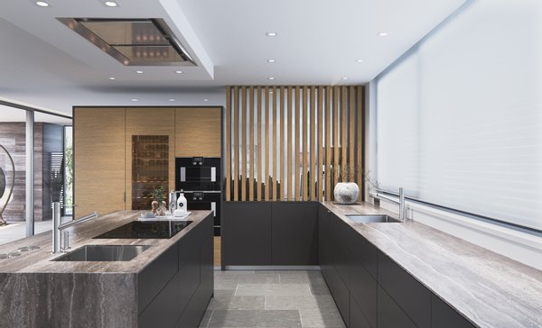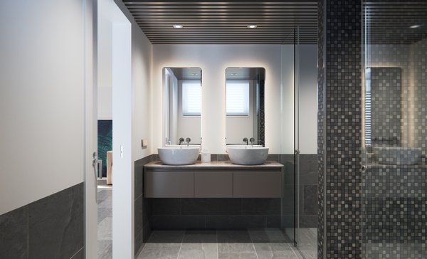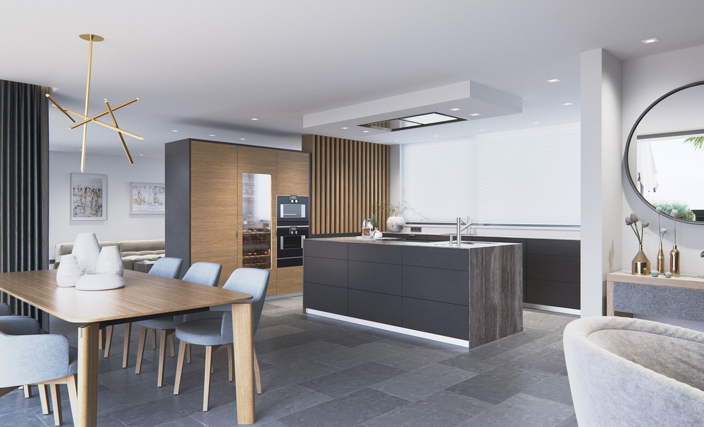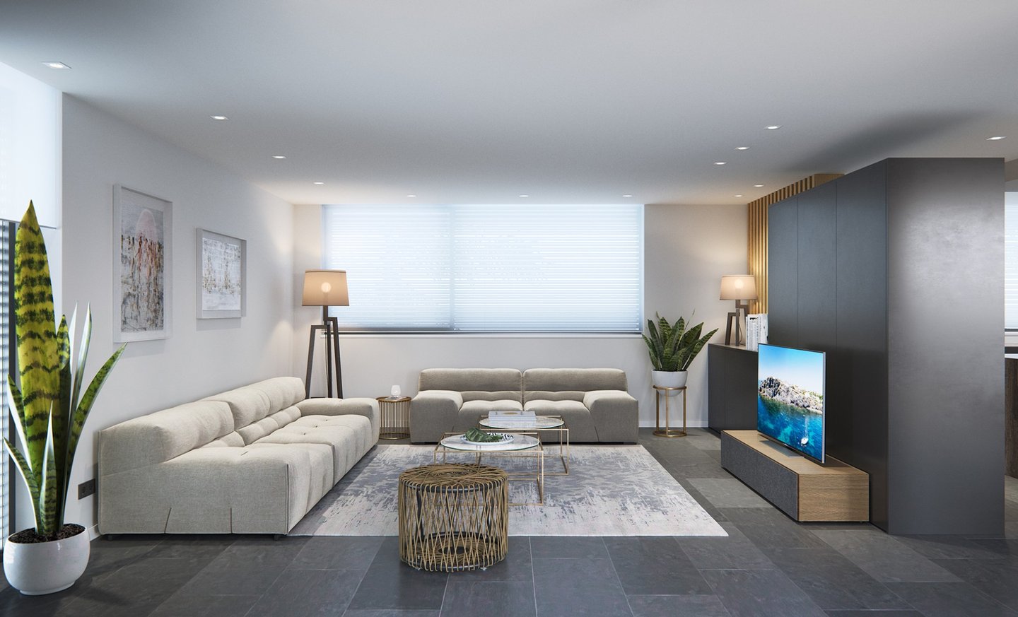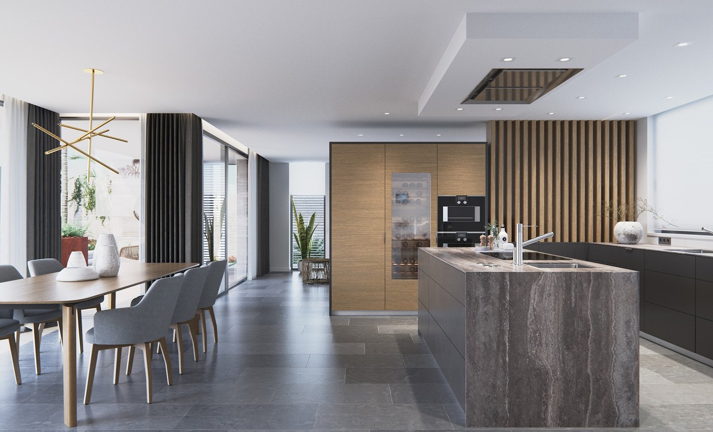 Im Inneren befinden sich fünf große Schlafzimmer, das Hauptschlafzimmer mit eigenem Bad und Ankleidezimmer, zwei Gästebäder und zwei Gästetoiletten, ein moderner und eleganter Wohn- und Essbereich, eine individuell gestaltbare Küche mit hochwertigen Elektrogeräten, die in das Design integriert sind, und ein integrierter Weinkühlschrank. Die Villa ist dank der großen, bodentiefen Fenster lichtdurchflutet und verfügt über eine Fußbodenheizung im gesamten Haus, eine Klimaanlage, einen Aufzug, der in jedes Stockwerk der Villa führt, ein SPA mit Jacuzzi, Sauna und Duschen (optional) sowie einen Wasch- und Abstellraum. Die Villen sind mit TV-Kameras an der Außenseite und Bewegungsmeldern im Inneren geschützt.