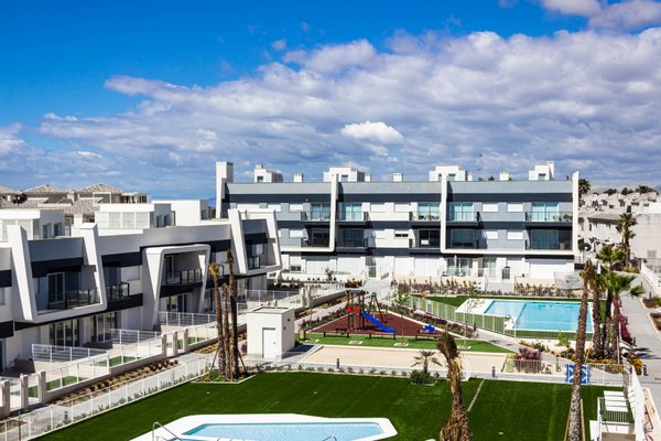 Die 2- und 3-Zimmer-Wohnungen sind nach einem sehr hohen Standard gebaut und bilden eine schöne Wohnanlage mit Swimmingpools für Erwachsene und Kinder, angelegten Gemeinschaftsgärten, Kinderspielplatz, Fahrradabstellraum, Tiefgarage und Abstellräumen. Die Wohnungen sind sorgfältig aufgeteilt und bieten einen schönen Blick auf die Gemeinschaftsbereiche, die natürliche Umgebung oder das Meer.