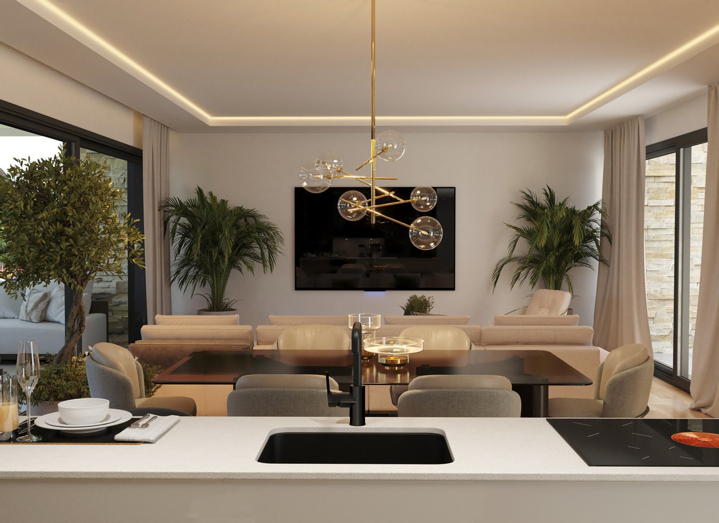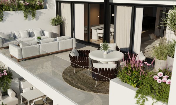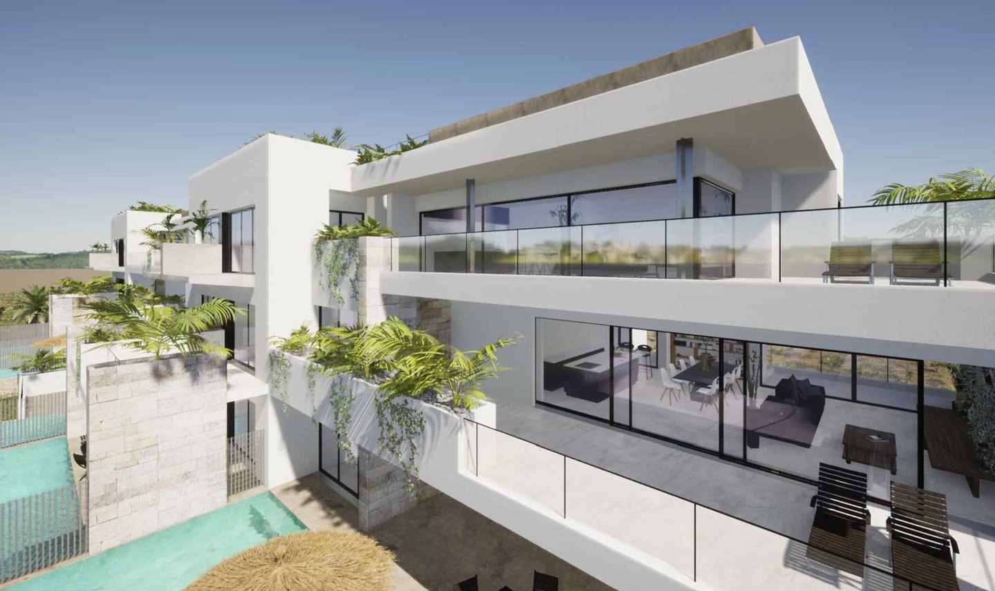 Die Anlage besteht aus 16 Luxuswohnungen mit großen Terrassen und Blick auf die umliegende Grünfläche. Alle Wohnungen im Erdgeschoss und im Obergeschoss haben einen eigenen Pool. Die Wohnungen im mittleren Stockwerk sind alle für Jacuzzi vorbereitet. Alle Wohnungen haben Zugang zum Gemeinschaftspool und zum Fitnessraum.