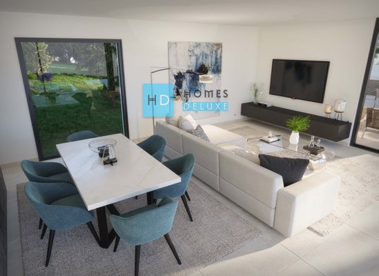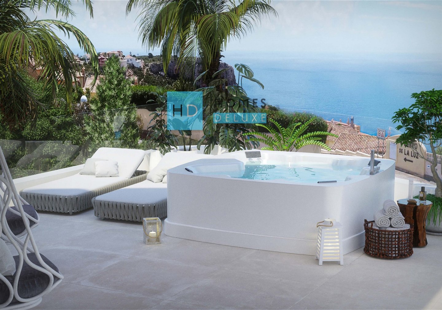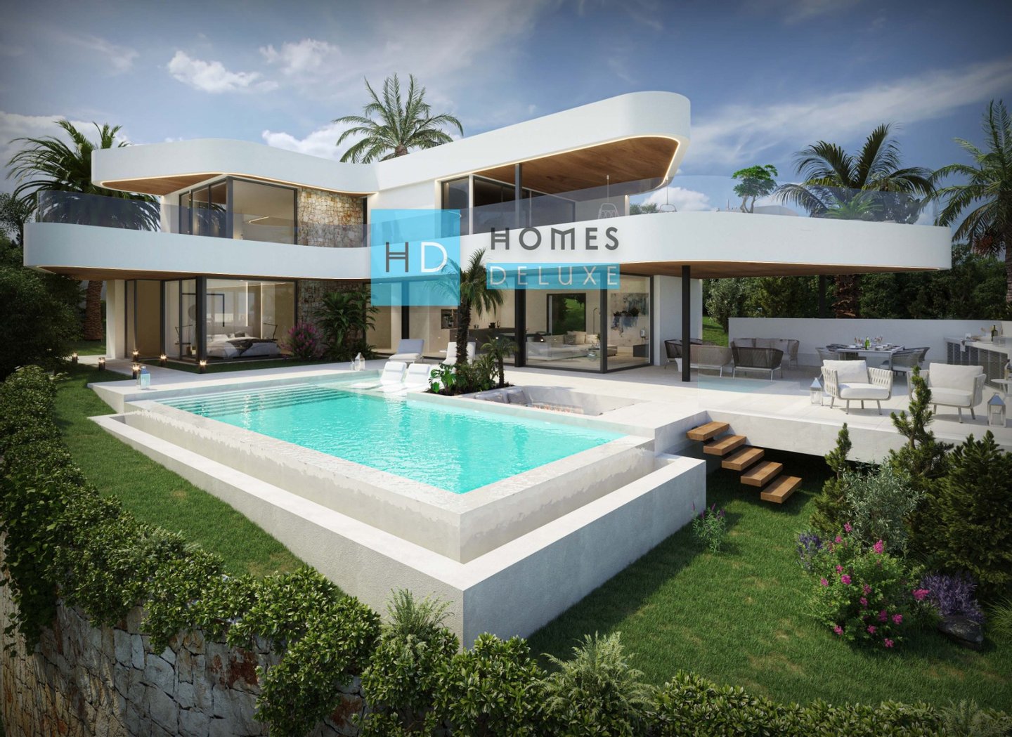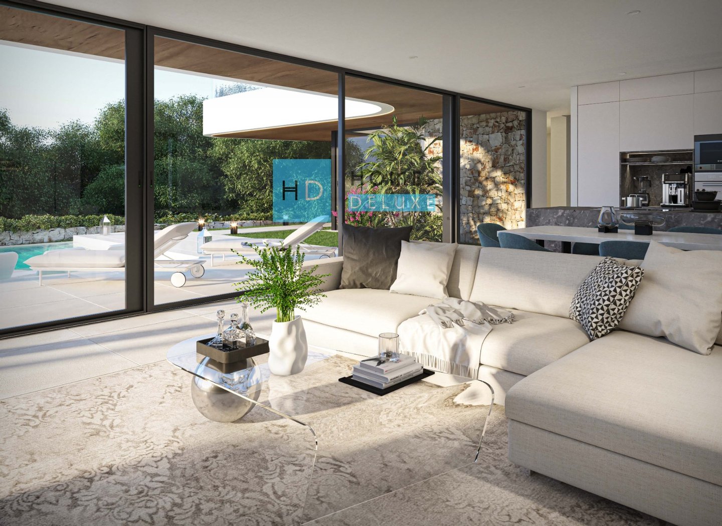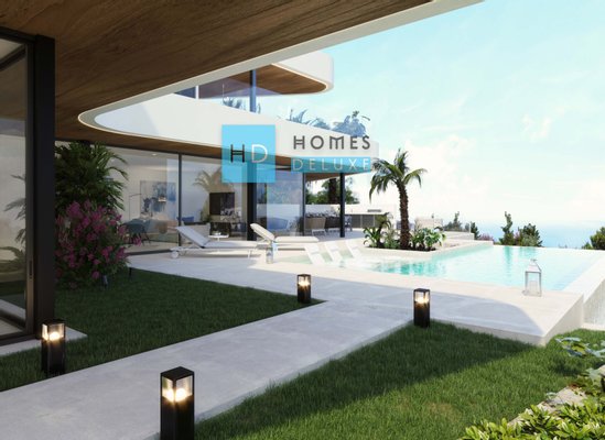 Das Innere besteht aus einem Eingangsbereich, der zum geräumigen offenen Wohn- und Essbereich mit großer Terrassentür führt, die viel natürliches Licht in die Villa lässt und den atemberaubenden Blick auf das Meer genießt, sowie Zugang zur Terrasse und zum Gartenbereich bietet, eine moderne Küche mit einem zusätzlichen Abstellraum dahinter, eine Gästetoilette und im Erdgeschoss befindet sich auch die Master-Suite mit großem Schlafzimmer, en-suite Badezimmer mit Badewanne und Ankleidebereich / begehbarer Kleiderschrank. Sowohl das Schlafzimmer als auch das Badezimmer bieten einen beeindruckenden Blick auf das Mittelmeer. Die interne Treppe führt Sie in den ersten Stock mit drei weiteren Doppelschlafzimmern, alle mit eigenem Bad. Alle Schlafzimmer im ersten Stock haben Zugang zu einer Sonnenterrasse, die größere Sonnenterrasse hat eine Vorinstallation für einen Jacuzzi zum Sitzen und Genießen der erstaunlichen Aussicht auf die Umgebung und das Meer.