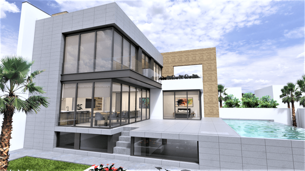Luxus-Villa im modernen Stil mit 4 Schlafzimmern in La Zenia (Alicante), in zweiter Linie zum Strand (79 Meter) und in der Nähe aller Annehmlichkeiten, darunter das beliebte Einkaufszentrum "La Zenia Boulevard".