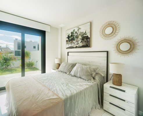 Die Innenaufteilung umfasst einen offenen Wohn- und Essbereich mit Terrassentüren, die Zugang zur Terrasse bieten, eine moderne amerikanische Küche, eine Waschküche, ein Hauptschlafzimmer mit eigenem Bad, zwei weitere Doppelschlafzimmer und ein Gästebad. Die Eigenschaften kommen einschließlich Vorinstallation für Klimaanlage, Küche Elektrogeräte (Backofen, Herd und Dunstabzugshaube), Einbauschränke in allen Schlafzimmern, USB-Ladegeräte in allen Schlafzimmern und Vorinstallation für die Ladestation für Elektroautos im Parkplatz.