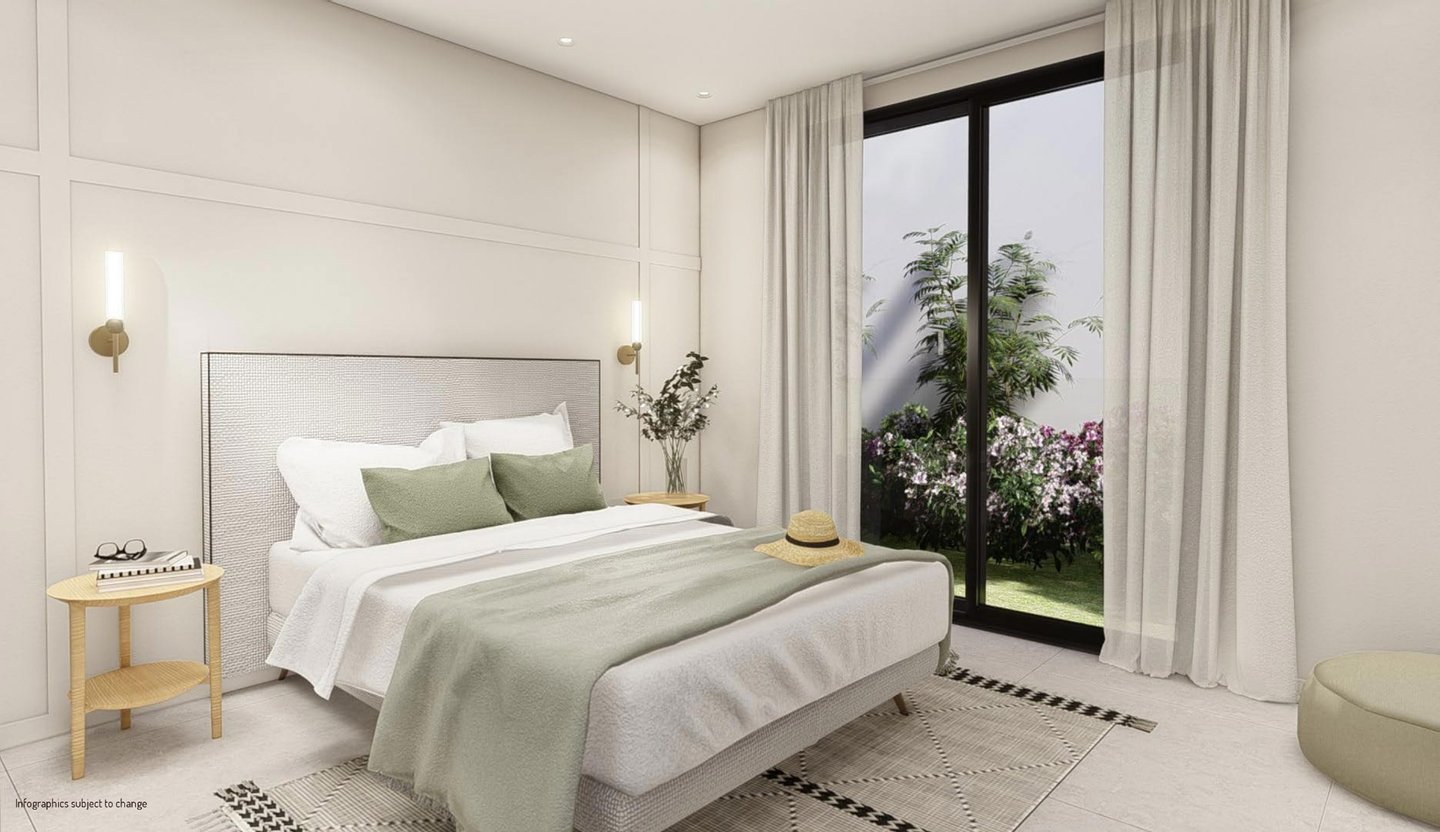 Die Villen bieten alle einen atemberaubenden Blick über den Horizont und wurden mit einem modernen Design gebaut, das viel Wohnraum bietet. Der Grundriss besteht aus einem geräumigen, offenen Wohn- und Essbereich mit großen Fenstern, die viel natürliches Licht ins Haus lassen und Zugang zur Terrasse und zum Garten bieten, einer voll ausgestatteten modernen Küche, einem Hauswirtschaftsraum und einem Gäste-WC. Die interne Treppe führt Sie in den ersten Stock, wo sich die Master-Suite mit einem großen Schlafzimmer, einem eigenen Bad und einem Ankleidebereich befindet. Es gibt auch eine Sonnenterrasse, die über den Flur im ersten Stock erreicht werden kann.