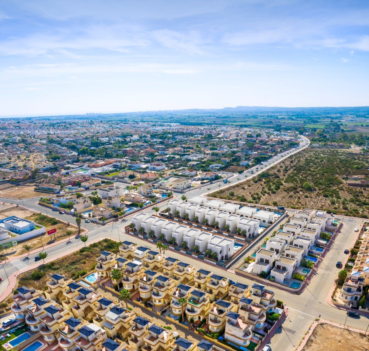 Brandneues Projekt von 23 Villen im Ibiza-Stil mit 3 Schlafzimmern in der Urbanisation La Marina, San Fulgencio (Alicante), in der Nähe der schönen Strände von Guardamar del Segura und nur 20 Minuten vom Flughafen Alicante