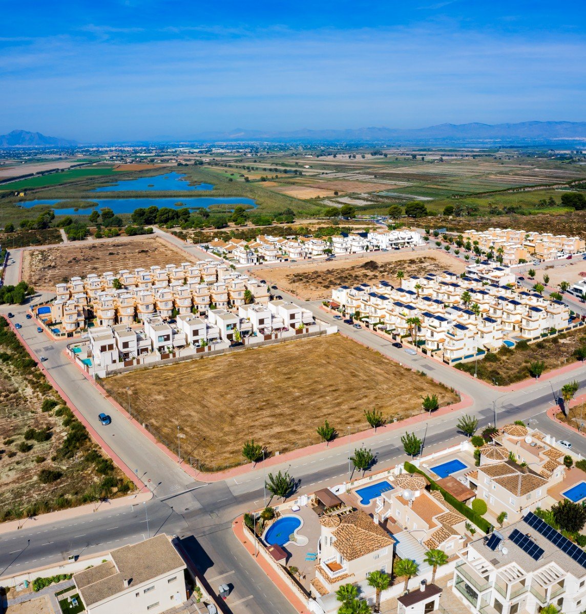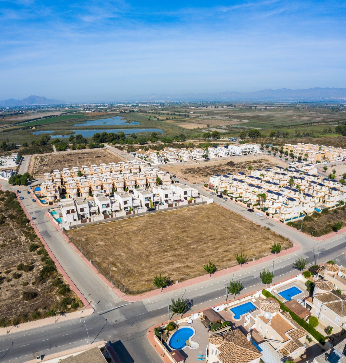 Brandneues Projekt von 23 Villen im Ibiza-Stil mit 3 Schlafzimmern in der Urbanisation La Marina, San Fulgencio (Alicante), in der Nähe der schönen Strände von Guardamar del Segura und nur 20 Minuten vom Flughafen Alicante entfernt.