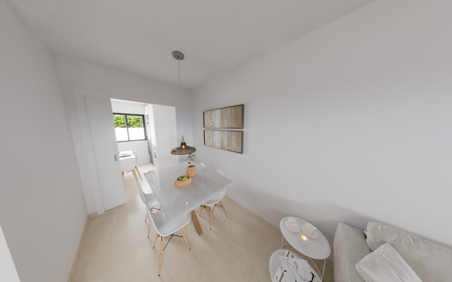 Die Immobilie erstreckt sich über zwei Etagen mit einer Dachterrasse von 30m2. Der Grundriss besteht aus einem offenen Wohn- und Essbereich und Sie haben die folgende Auswahl der Aufteilung:
