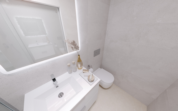 Dieses Modell hat zwei Innenaufteilungen mit 2 oder 3 Schlafzimmern, eine unabhängige Küche oder eine amerikanische Küche, ein privates Solarium auf dem Dach, einen optionalen Privatparkplatz und ist mit hochwertigen Materialien und Oberflächen ausgestattet. Die Wohnungen blicken auf die Gemeinschaftsgärten und den Gemeinschaftspool, der den Bewohnern zur Verfügung steht.
