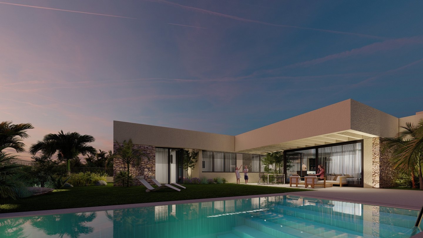 Brandneue Villen im modernen Stil mit 3 Schlafzimmern in Altaona Golf and Country Village, Corvera (Murcia), die speziell dafür entworfen wurden, endlose Ausblicke auf den Golfplatz, die Seen und die ferne Landschaft zu bieten, sowohl von innen als