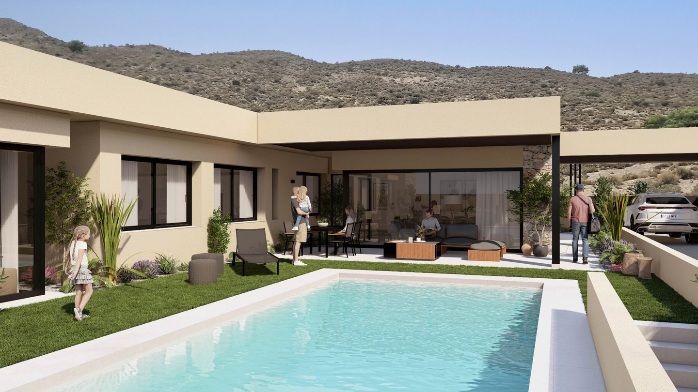 Die Villa befindet sich auf einer Ebene und besteht aus einem Eingangsbereich, der zum geräumigen Wohn- und Essbereich mit großen Fenstern führt, die Zugang zur Terrasse und zum Garten bieten, einer modernen amerikanischen Küche, einer separaten Waschküche, einer Gästetoilette, einer Master-Suite mit großem Schlafzimmer, en-suite Badezimmer und Ankleidebereich, und zwei weitere Doppelschlafzimmer, beide mit eigenem Bad. Die Eigenschaften kommen einschließlich voll installierte Klimaanlage, Fußbodenheizung im Wohnzimmer und Bäder, Küchengeräte (Herd und Dunstabzugshaube), Einbauschränke und USB-Steckdosen in allen Schlafzimmern, Hausautomation, Video-Gegensprechanlage, Innen- und Außen-LED-Beleuchtung, privater Parkplatz auf dem Grundstück, angelegten Garten und privaten Swimmingpool von 8x4, die Wartung des Pools, Gemeinschafts-, Privat-und Dachgärten wird im Rahmen der Gemeinschaft Gebühren der Eigentümer gewährleistet die Gärten sind immer in perfektem Zustand durchgeführt werden. Es gibt auch optionale Extras zur Auswahl, einschließlich Sonnenkollektoren, komplette Küche elektrische Geräte, Gas-System, elektrische Auto Ladepunkt, Kamin, Aufzug (für Villen mit zwei Etagen) und zusätzlichen Stauraum im Flur.