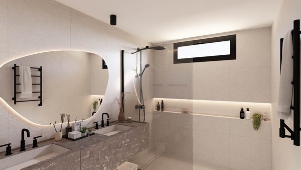 Die Architekten und Designer wissen, wie sich eine Immobilie in ihre Umgebung einfügen muss. Die Villen sind niedrig gebaut, um die Landschaft nicht zu erdrücken. Wenn man im Garten steht, hat man den Eindruck, sich in den Bergen zu befinden. Die Wände sind teilweise mit einer Steinfassade versehen, die ein warmes, natürliches Erscheinungsbild erzeugt und es dem Gebäude ermöglicht, mit der Umgebung zu verschmelzen, während es gleichzeitig eine effiziente thermische Barriere darstellt.