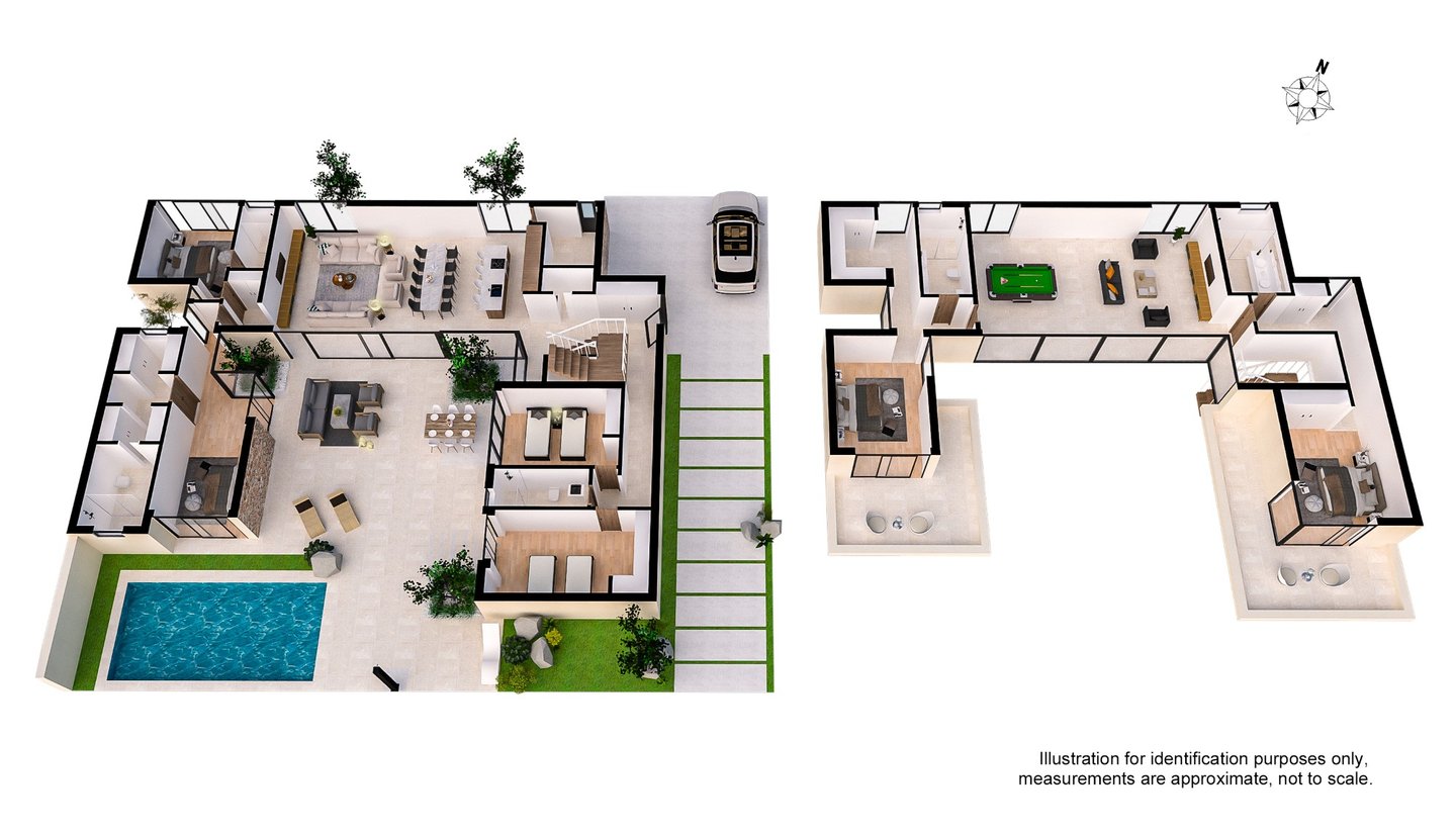 Brandneue Villen im modernen Stil mit 6 Schlafzimmern in Altaona Golf and Country Village, Corvera (Murcia), die speziell dafür entworfen wurden, endlose Ausblicke auf den Golfplatz, die Seen und die ferne Landschaft zu bieten, sowohl von innen als