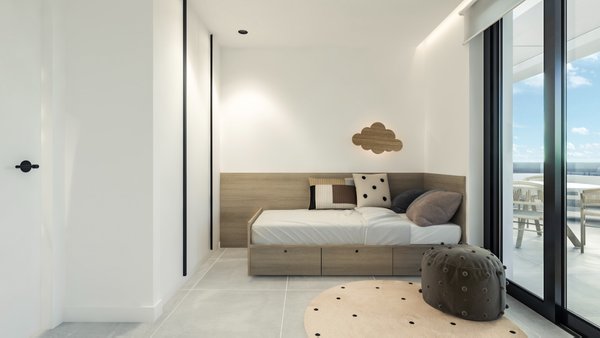 Das Innere Layout besteht aus einem hellen offenen Wohn- und Essbereich mit moderner amerikanischer Küche, große Terrassentüren aus dem Wohnbereich den Zugang zu der geräumigen Terrasse von 73m2, Master-Schlafzimmer mit en-suite Badezimmer, zwei weitere Doppel-Schlafzimmer und Gästebad. Die Penthouse-Wohnung verfügt über eine Außentreppe, die zu einer 87 m2 großen Dachterrasse führt, auf der man den ganzen Tag über die Sonne genießen kann. Die Wohnungen verfügen über Elektrogeräte in der Küche (Backofen, Kochfeld, Dunstabzugshaube, Kühlschrank mit Gefrierfach, Mikrowelle, Geschirrspüler und Waschmaschine), Einbauschränke in allen Schlafzimmern, einen privaten Parkplatz und Abstellraum sowie eine Ladestation für Elektrofahrzeuge.