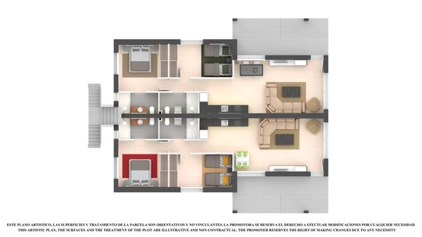 Die Villa befindet sich auf einer Ebene und besteht aus einem geräumigen, offenen Wohn- und Essbereich mit großen Terrassentüren, die Zugang zur Terrasse und zum Garten bieten, einer modernen Küche im amerikanischen Stil, einem Hauptschlafzimmer mit eigenem Bad, einem weiteren Doppelschlafzimmer und einem Gästebad. Über eine Außentreppe an der Rückseite des Hauses gelangt man auf die 80 m2 große Dachterrasse, auf der man den ganzen Tag über die Sonne genießen kann. Auch im Erdgeschoss gibt es viel Außenraum mit einer großen Terrasse und einem Gartenbereich, der optional mit einem privaten Swimmingpool (verschiedene Größen zur Auswahl) ausgestattet werden kann. Die Häuser verfügen über eine vorinstallierte Klimaanlage, Einbauschränke in allen Schlafzimmern, LED-Beleuchtung, die Möglichkeit, in den Badezimmern eine Badewanne oder eine Dusche zu wählen, und zum Grundstück gehört auch ein überdachter Privatparkplatz.