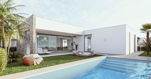 Ein brandneues Projekt von 6 modernen mediterranen freistehenden Villen mit einem geräumigen offenen Wohnbereich mit 3 Schlafzimmern und 2 Bädern in Mar de Cristal (Murcia), weniger als 500 Meter von den schönen Stränden entfernt und in der Nähe des La Manga Club Resort.