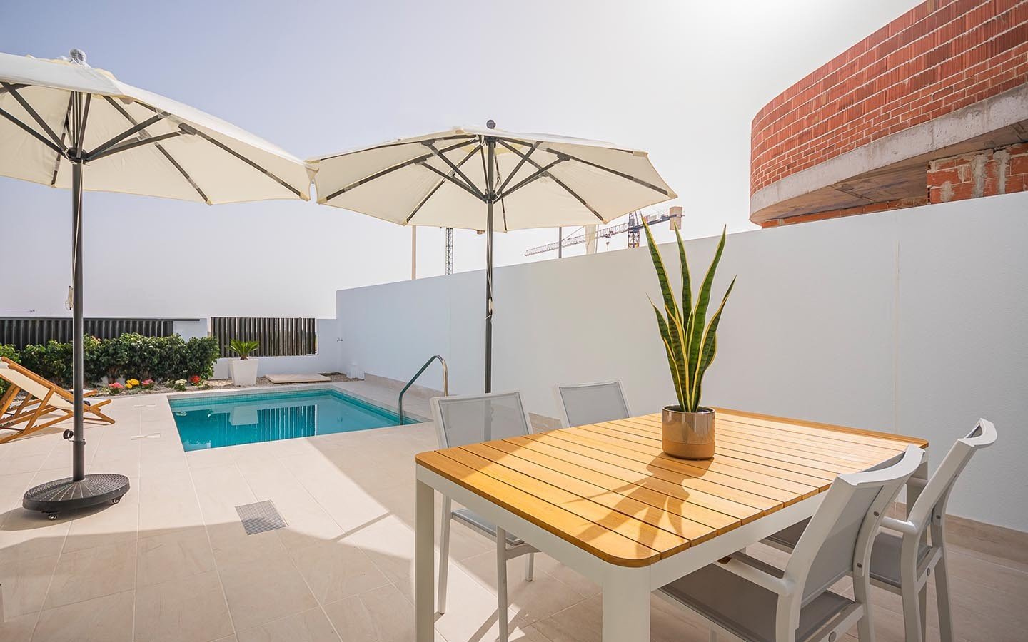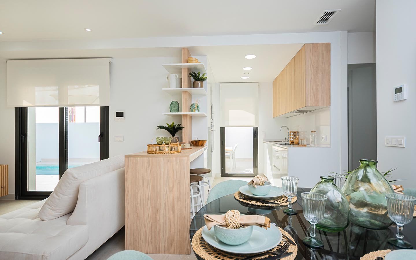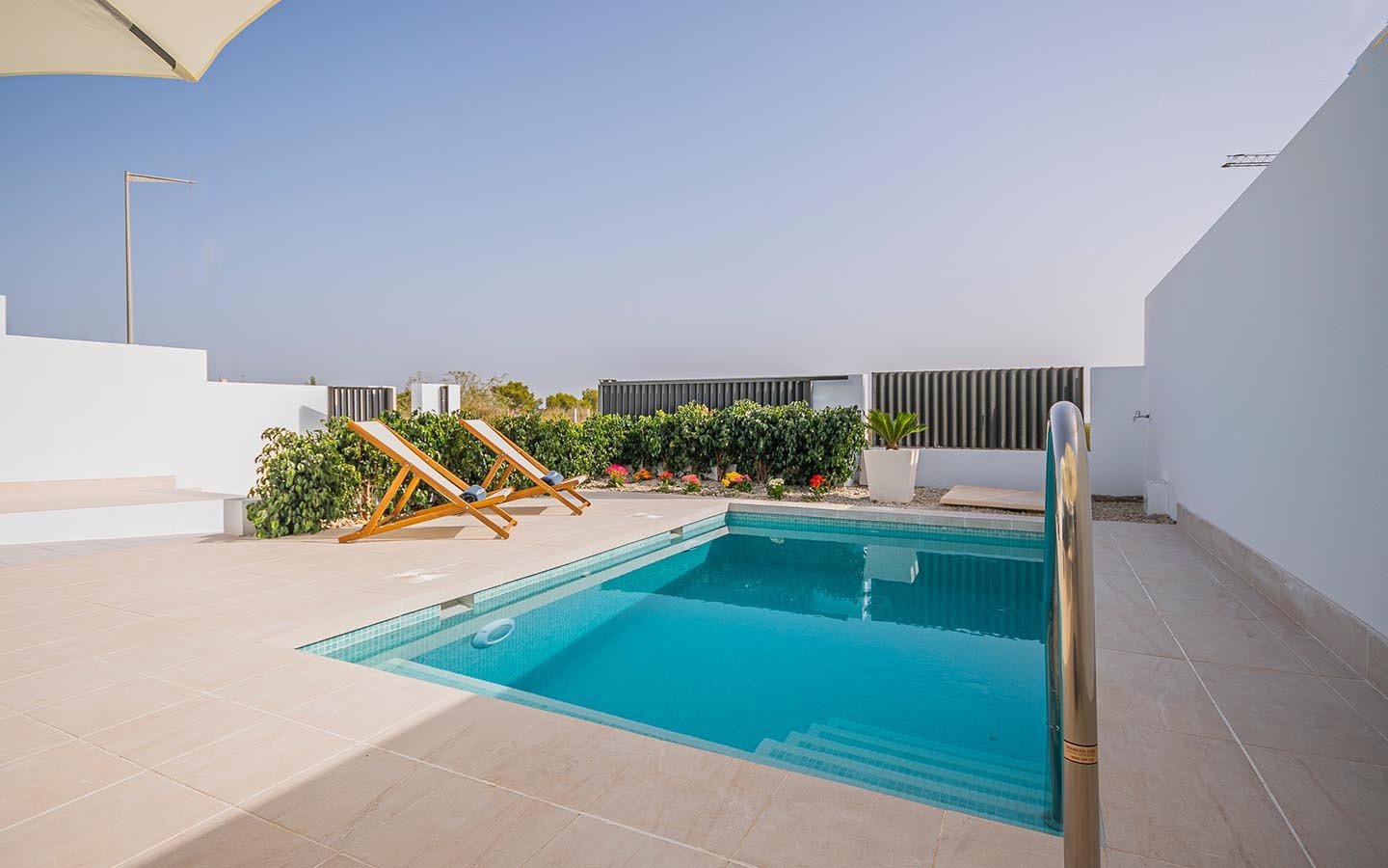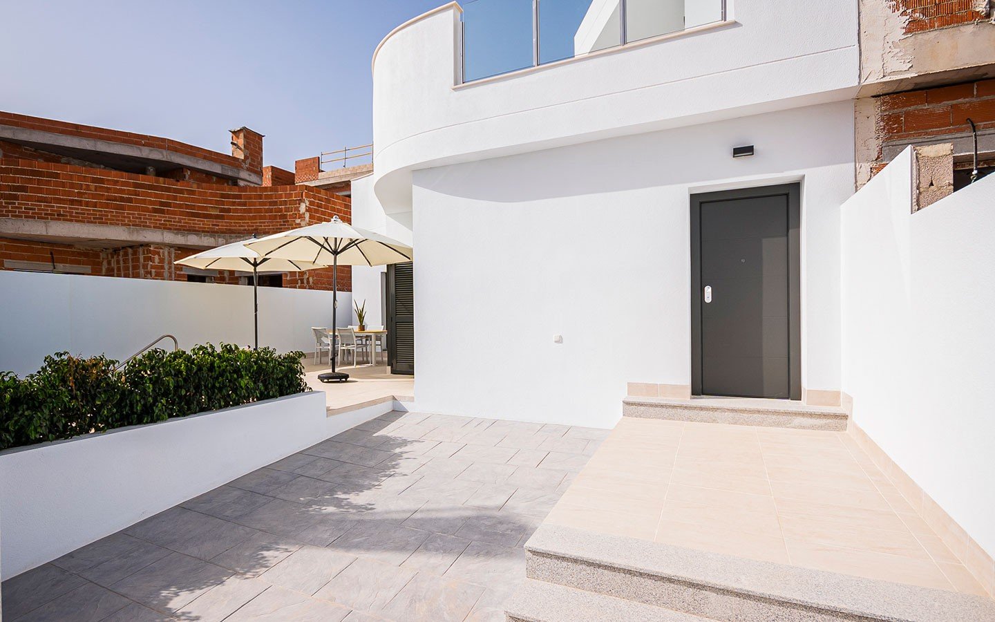 Eine brandneue exklusive Wohnanlage mit Doppelhaushälften mit 3 Schlafzimmern, 3 Bädern und privatem Pool in Los Balcones (Alicante) mit herrlichem Blick auf die Laguna Rosa de Torrevieja und das Mittelmeer, in der Nähe von allen Annehmlichkeiten und eine kurze Fahrt zu den schönen Stränden.