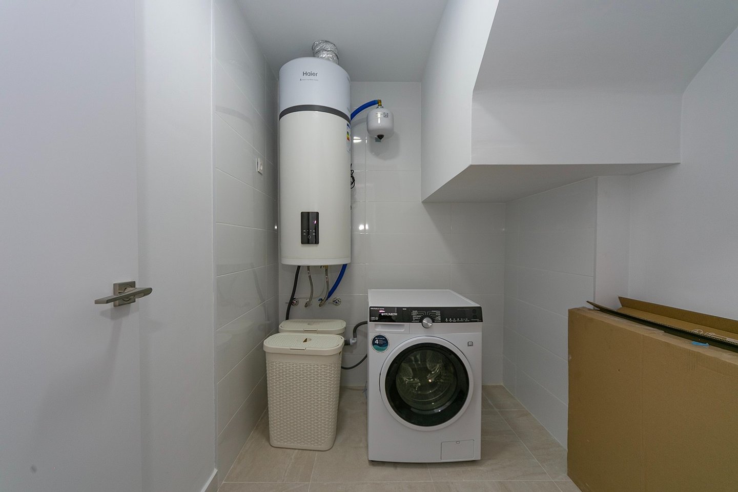Die Wohnung besteht aus einem hellen und geräumigen, offenen Wohn- und Essbereich mit Terrassentüren zur Terrasse, einer modernen amerikanischen Küche, einem Hauptschlafzimmer mit eigenem Bad, einem weiteren Doppelschlafzimmer und einem Gästebad. Über die Innentreppe im Erdgeschoss gelangt man in das Untergeschoss mit Waschküche, Abstellraum und einem großen Wohnbereich, in dem man nach Belieben zusätzlichen Wohnraum schaffen kann, mit einer englischen Terrasse, die natürliches Licht ins Untergeschoss bringt. Über die Außentreppe im Terrassenbereich der Dachgeschosswohnungen gelangen Sie auf die große Dachterrasse mit fast 75 m2, auf der Sie den ganzen Tag über die Sonne genießen können. Die Wohnungen verfügen über eine vorinstallierte Klimaanlage, Einbauschränke in allen Schlafzimmern, Waschküche, LED-Beleuchtung innen und außen, elektrische Rollläden, Alarmanlage, Video-Gegensprechanlage, private Tiefgarage, Abstellraum und Ladestation für Elektrofahrzeuge.