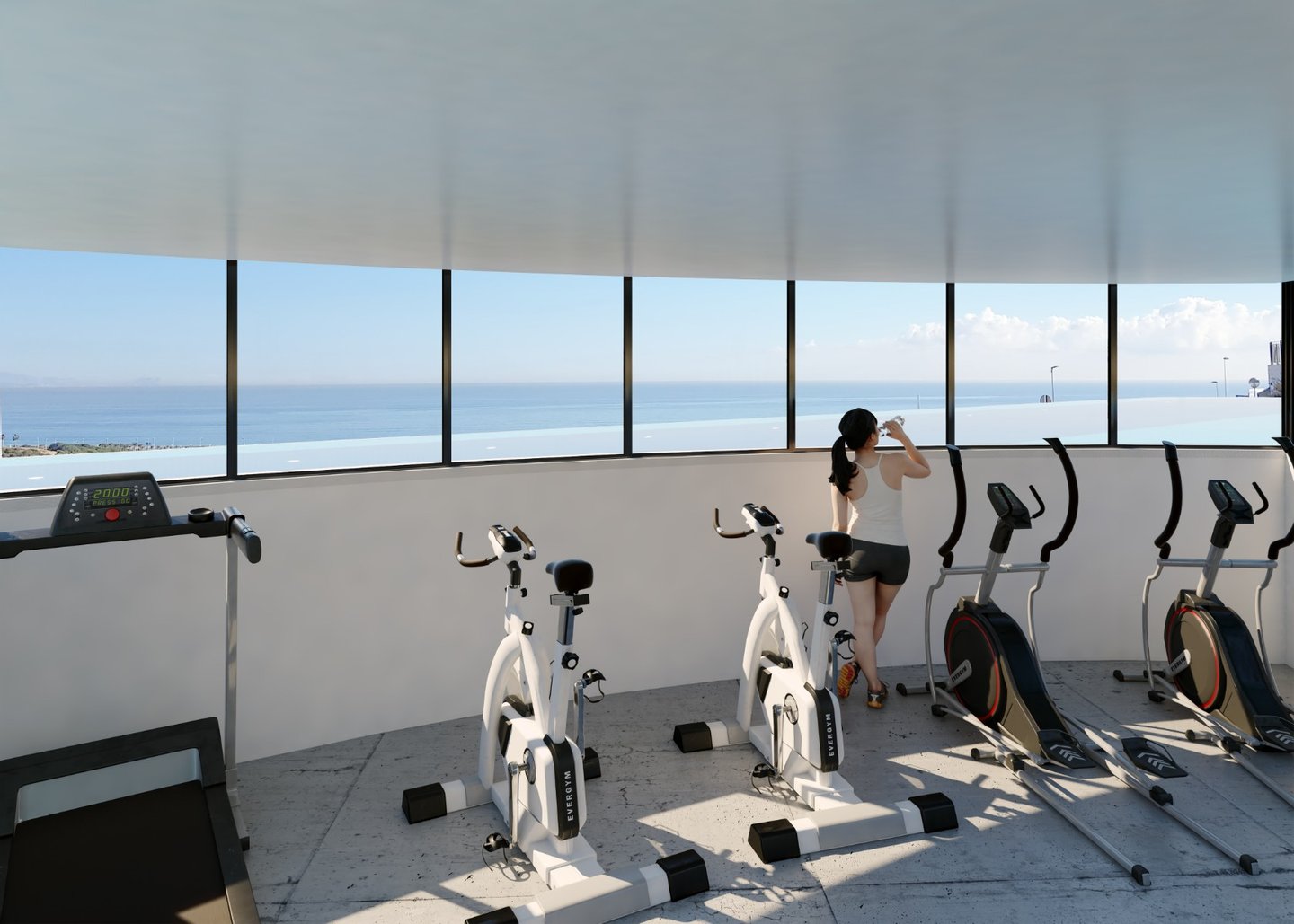 Die Innenausstattung besteht aus einem hellen, offenen Wohn- und Essbereich mit Terrassentüren zur Terrasse, einer voll ausgestatteten modernen Küche, zwei Doppelschlafzimmern und - je nach Modell - einem oder zwei Badezimmern sowie einem separaten Gäste-WC. Die Wohnungen verfügen über eine Klimaanlage, ein aerothermisches System für die Warmwasseraufbereitung, eine Fußbodenheizung in den Bädern, Elektrogeräte in der Küche (Cerankochfeld, Backofen, Kühlschrank mit Gefrierfach, Mikrowelle, Geschirrspüler und Waschmaschine), Einbauschränke in allen Schlafzimmern, einen Sicherheitssafe, elektrische Jalousien, eine Gegensprechanlage, eine private Tiefgarage und einen Abstellraum sowie eine Vorinstallation für Ladestationen für Elektrofahrzeuge auf den Parkplätzen.