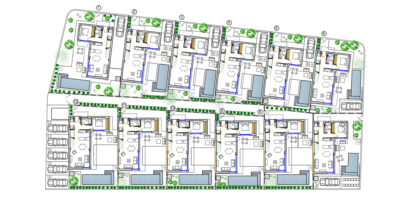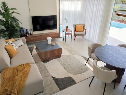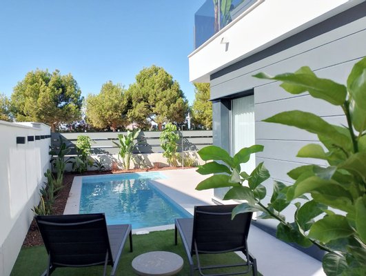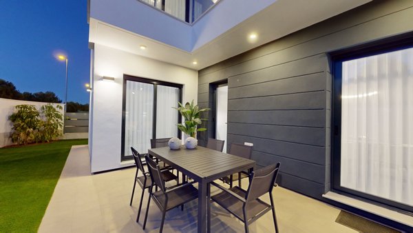 Die Villen sind in einem zeitgenössischen Stil entworfen und in einer "L"-Form über zwei Ebenen. Der weitläufige Außenbereich bietet die Möglichkeit, das Leben in Spanien im Freien zu genießen, mit Entspannungszonen rund um den privaten Swimmingpool und Bereichen für die Unterhaltung von Familie und Freunden.