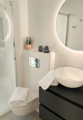 Die Wohnungen sind mit vorinstallierter Klimaanlage, Fußbodenheizung in den Bädern, Elektrogeräten in der Küche, Einbauschränken in allen Schlafzimmern, elektrischen Jalousien in den Schlafzimmern, LED-Beleuchtung innen und außen, Gegensprechanlage, privatem Swimmingpool und privatem Parkplatz ausgestattet. Es gibt das optionale Extra einer Dachterrasse Solarium.