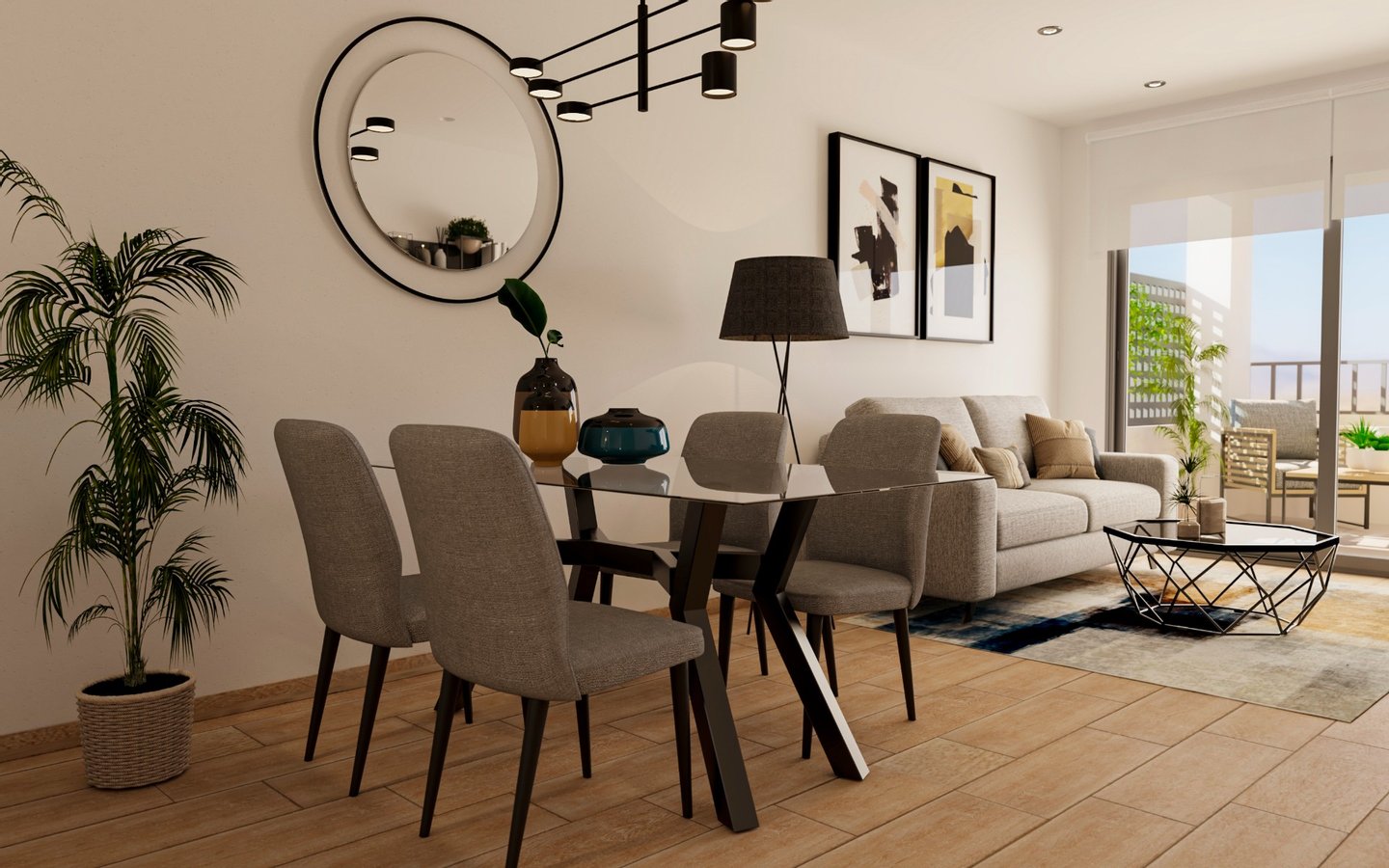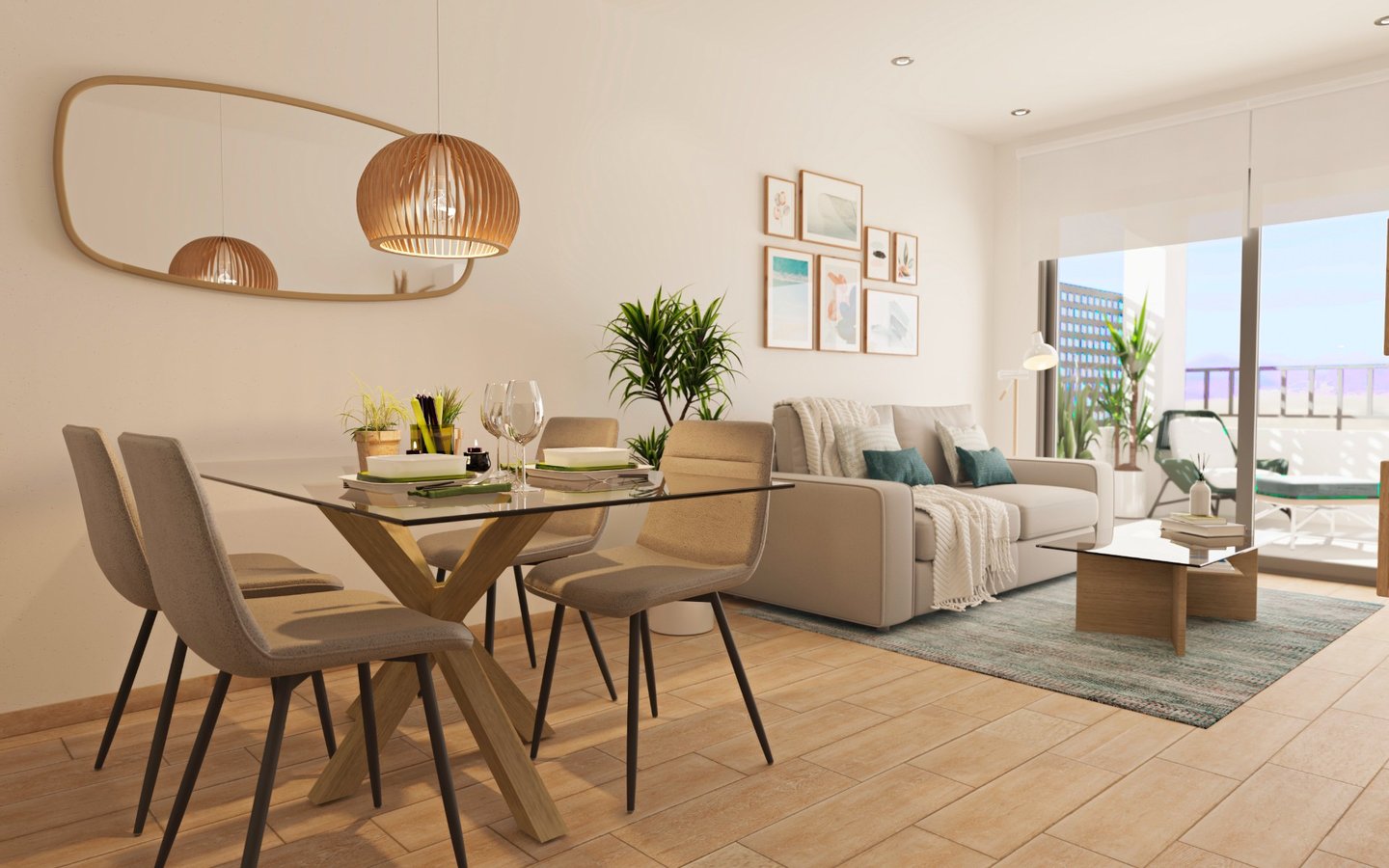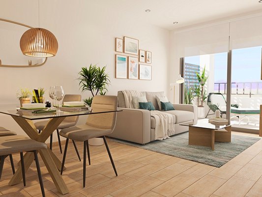 Die Wohnungen bestehen aus einem offenen Wohn- und Essbereich mit Terrassentüren, die auf die Terrasse führen, einer modernen amerikanischen Küche, einem Schlafzimmer mit Zugang zur Terrasse und einem separaten Badezimmer. Einige der Wohnungen haben eine Sonnenterrasse auf dem Dach, die über den Aufzug und/oder die Gemeinschaftstreppe erreichbar ist. Die Wohnungen verfügen über eine vorinstallierte Klimaanlage, Einbauschränke in allen Schlafzimmern, LED-Beleuchtung, TV-Empfang, WI-FI-Router mit der Möglichkeit, einen Vertrag mit dem örtlichen Provider abzuschließen, eine private Tiefgarage und einen Fahrradabstellplatz. Es gibt verschiedene optionale Extras zur Auswahl, darunter die Möglichkeit, verschiedene Möbelpakete zu wählen, um die Wohnungen auf einem sehr hohen Standard einzurichten.