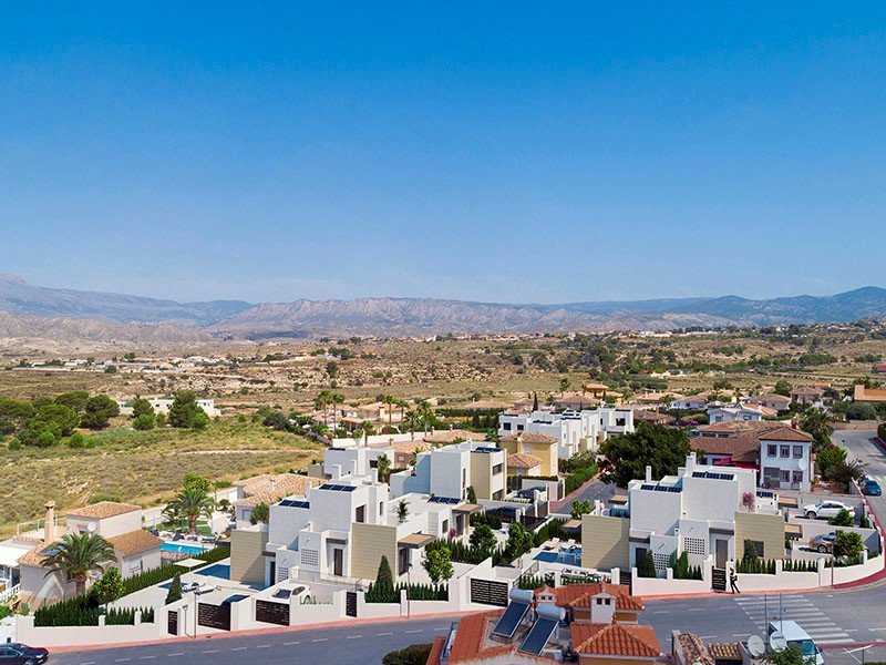 LETZTE VERFÜGBARE VILLA - SCHLÜSSELFERTIGBrandneues Projekt von Doppelhaushälften und freistehenden Villen mit 2 und 3 Schlafzimmern in Busot (Alicante), einem ruhigen Dorf am Fuße der Sierra del Cabeço D'or Berge. Ein Ort, um die natürliche Umgebung der Berge und des Meeres zu genießen. Weniger als 10 Minuten von den Stränden El Campello und San Juan entfernt und ganz in der Nähe von zwei herrlichen Golfplätzen, Golf Bonalba und Alicante Golf.