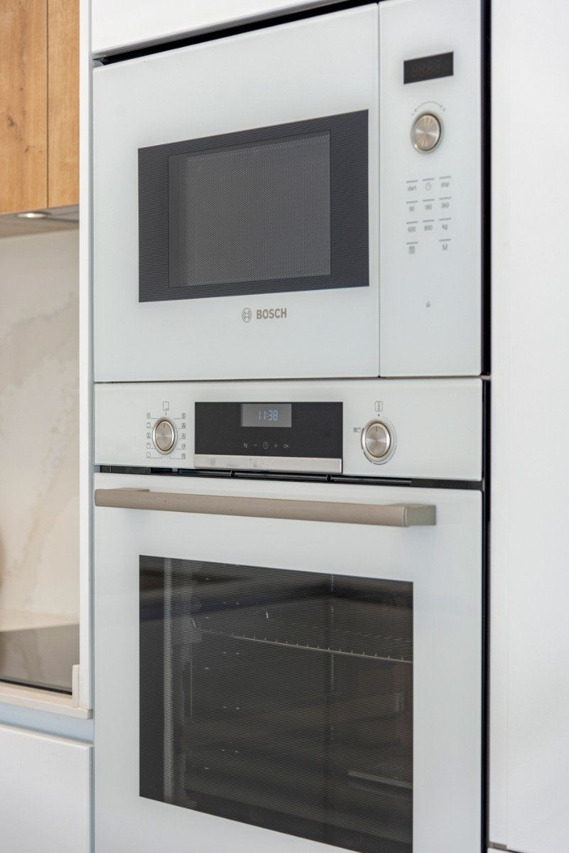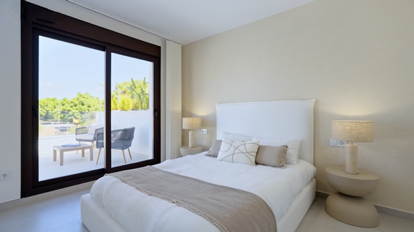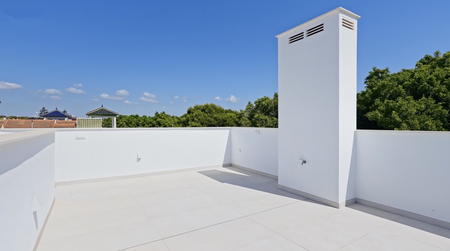 Die Villa erstreckt sich über zwei Ebenen und die Innenaufteilung besteht aus einer Eingangshalle, die zu einem geräumigen, offenen Wohn- und Essbereich mit großen Terrassentüren führt, die Zugang zur Terrasse und zum Garten bieten, einer voll ausgestatteten, modernen Küche im amerikanischen Stil mit einem separaten Wasch- und Abstellraum. Die interne Treppe führt Sie in den ersten Stock mit zwei weiteren Doppelschlafzimmern, beide mit en-suite Badezimmern. Eines der Schlafzimmer und der Flur haben Zugang zur privaten Sonnenterrasse von 15m2. Die interne Treppe führt Sie auch auf die umfangreiche Dachterrasse von 27m2, um die Sonne den ganzen Tag lang zu genießen. Der Garten und die Terrasse bieten viel Platz zum Entspannen rund um den privaten Swimmingpool und zum Essen im Freien, um Familie und Freunde zu unterhalten.