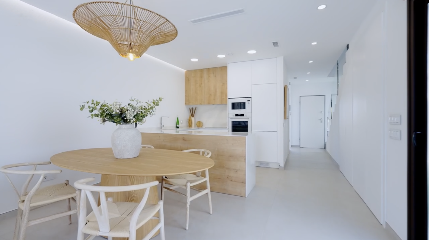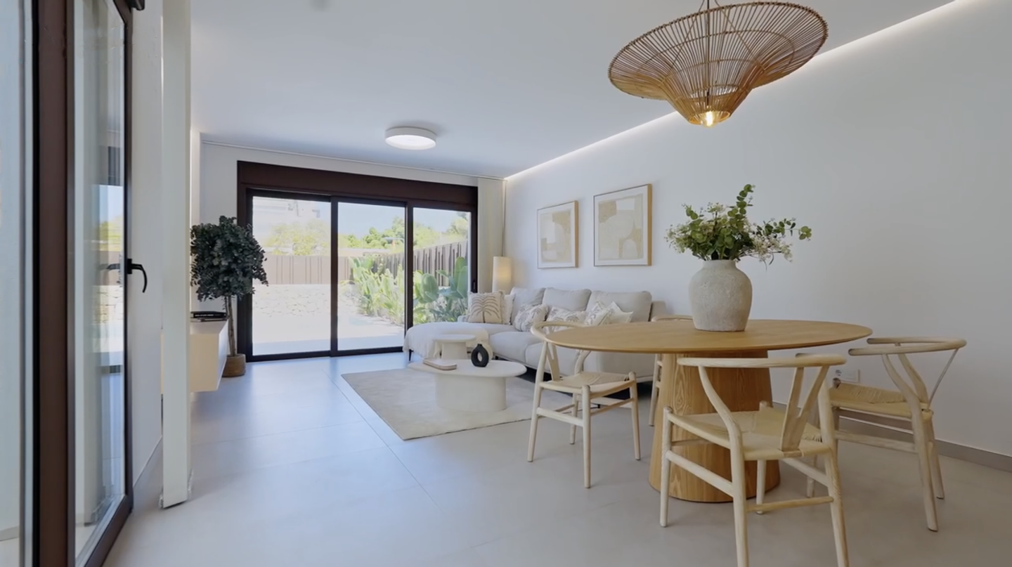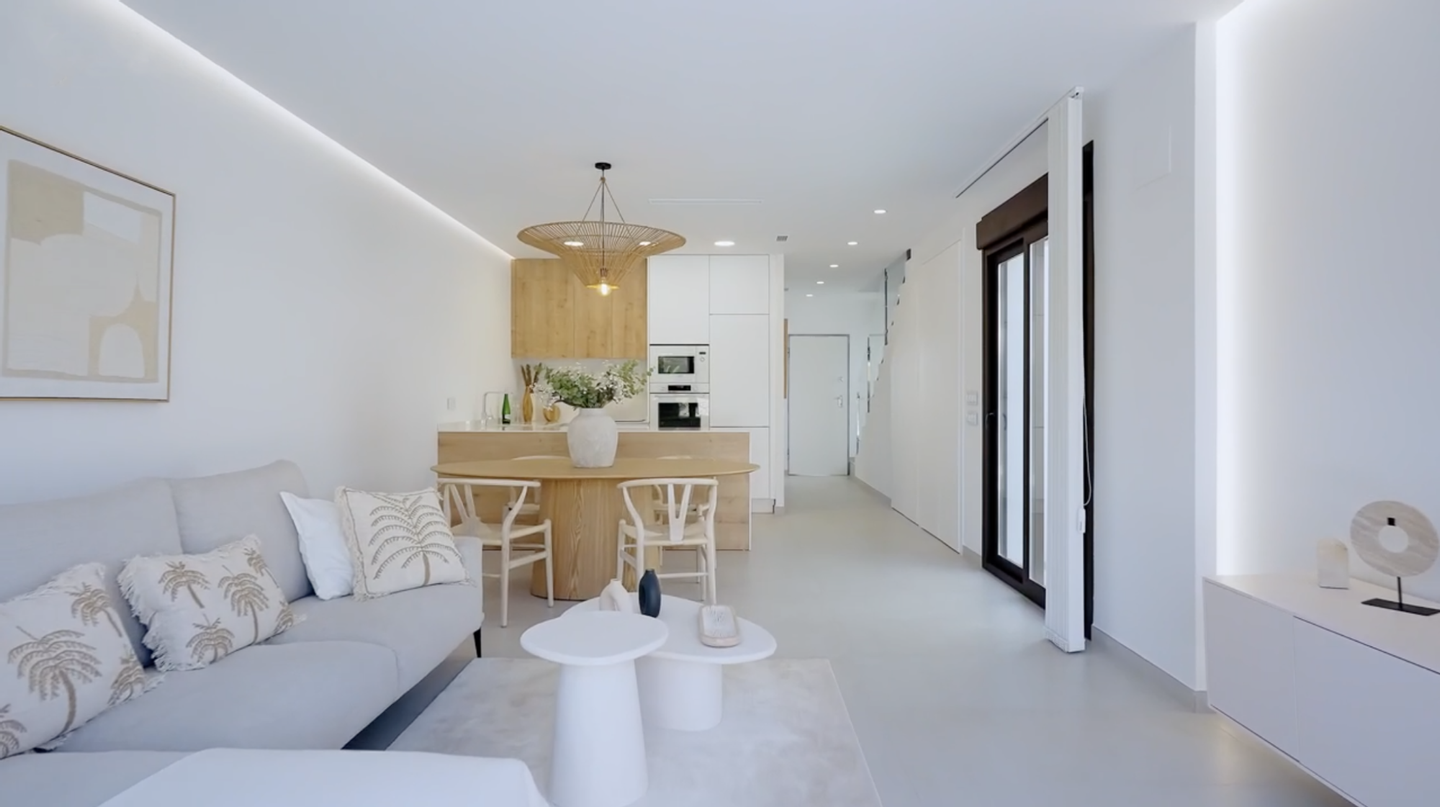 Das Haus liegt in der Nähe des Strandes Mil Palmeras, zwischen Campoamor und Torre de la Horadada. Diese Gegend ist bekannt für ihre schönen Strände mit feinem Sand, die mit der blauen Flagge ausgezeichnet sind. In der Gegend gibt es eine Reihe von Annehmlichkeiten wie Supermärkte, Bars, Restaurants, Apotheken, etc. Nur wenige Autominuten entfernt befindet sich eines der größten Einkaufszentren der Provinz Alicante, der "Zenia Boulevard". Sie können auch die Natur genießen, die Wohnanlage ist umgeben von einem natürlichen pinnate und ein Weg, direkt neben dem Fluss Seco, wo Sie Spaziergänge machen können. Ganz in der Nähe des Projekts befinden sich 4 Golfplätze, in weniger als 10 Minuten mit dem Auto erreichen Sie Villamartin Golf, Las Ramblas Golf, Real Club de Golf Campoamor Resort und den preisgekrönten Las Colinas Golf and Country Club.