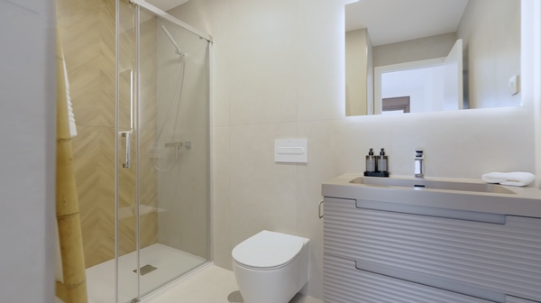 Die Villen verfügen über einen zeitgenössischen Stil mit 3 Schlafzimmern und 3 Bädern, einen privaten Swimmingpool von 5,30 x 2,50 m, eine Dachterrasse und einen privaten Parkplatz.
