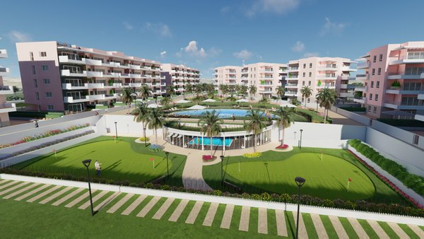 Die Wohnanlage befindet sich in einem geschlossenen Komplex mit schönen Gemeinschaftsgärten, die den Bewohnern zur Verfügung stehen, sowie einem großen Gemeinschaftspool mit Whirlpool, einem beheizten SPA, einem Fitnessraum mit biologisch-gesundheitlichen Geräten, einem Putting Green zum Üben Ihrer Golfkünste und einem Kinderspielplatz.