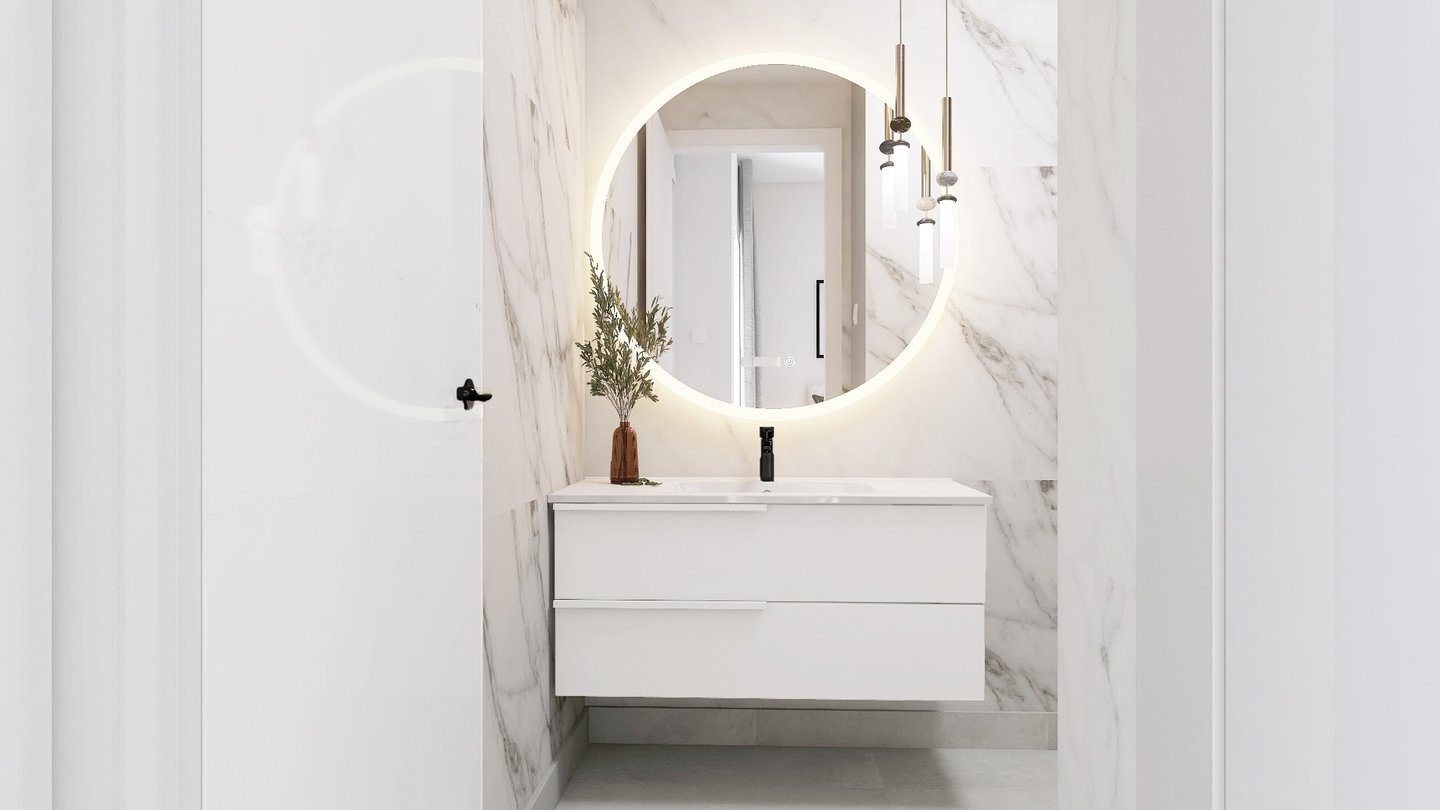 Alle Wohnungen verfügen über große Terrassen, auf denen Sie das spanische Klima und das Leben im Freien optimal genießen können. Die Innenausstattung besteht aus einem geräumigen, offenen Wohn- und Essbereich mit großen Terrassentüren, die Zugang zur Terrasse bieten, einer voll ausgestatteten modernen Küche im amerikanischen Stil, einem Hauptschlafzimmer mit eigenem Bad, zwei weiteren Doppelschlafzimmern und einem separaten Gästebad. Die Penthouse-Varianten verfügen über eine Außentreppe, die von der Terrasse auf die große Dachterrasse führt, auf der man den ganzen Tag über die Sonne genießen kann. Alle Wohnungen verfügen über einen privaten Tiefgaragenstellplatz.