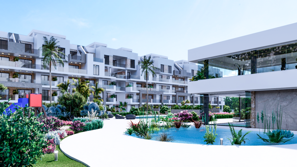 Ein brandneuer privater Wohnkomplex mit 135 Wohnungen mit 2 und 3 Schlafzimmern in El Raso, einem Viertel von Guardamar del Segura (Alicante), das an die Naturlandschaft der Salzlagune La Mata grenzt und nur eine kurze Fahrt von den herrlichen Stränden von Guardamar del Segura und La Mata entfernt ist.