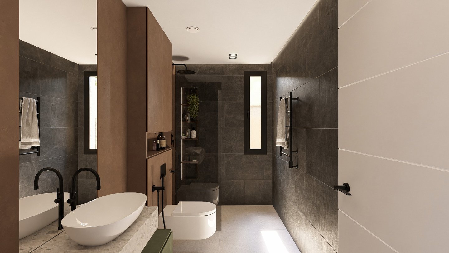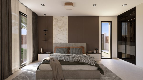 Die Villen mit 3 Schlafzimmern haben 3 verschiedene Modelle zur Auswahl, wobei zwei der Modelle auf einer Ebene liegen und das andere Modell sich über zwei Ebenen erstreckt. Die Innenaufteilung besteht aus einem Eingangsflur, der zu einem geräumigen, offenen Wohn- und Essbereich mit Fenstern zur Terrasse führt. Im Hauptwohnbereich befindet sich eine moderne amerikanische Küche mit Kochinsel und ein Gäste-WC. Die Villen wurden so konzipiert, dass sich das Hauptschlafzimmer mit eigenem Bad auf einer Seite der Villa befindet und zwei weitere Doppelschlafzimmer und ein separates Gästebad auf der anderen Seite der Villa, damit Sie Ihre eigene Privatsphäre haben, wenn Gäste zu Besuch kommen. Das Villenmodell auf zwei Ebenen unterscheidet sich in der Aufteilung durch 2 Doppelschlafzimmer im Erdgeschoss (eines mit eigenem Bad) und ein separates Gästebad. Eine interne Treppe führt Sie in den ersten Stock, wo sich die beeindruckende Hauptsuite mit großem Schlafzimmer, eigenem Bad und begehbarem Kleiderschrank befindet. Die erste Etage hat auch Zugang zu zwei Sonnenterrassen auf der Vorder- und Rückseite des Hauses.