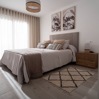 Die Immobilien wurden auf drei Ebenen mit einem zeitgenössischen Stil und offenes Konzept, mit 3 Schlafzimmern und 2 Bädern geplant. Sie verfügen über verschiedene Terrassenbereiche und eine große Dachterrasse, die es Ihnen ermöglicht, jeden Tag des Jahres die Sonne zu genießen.