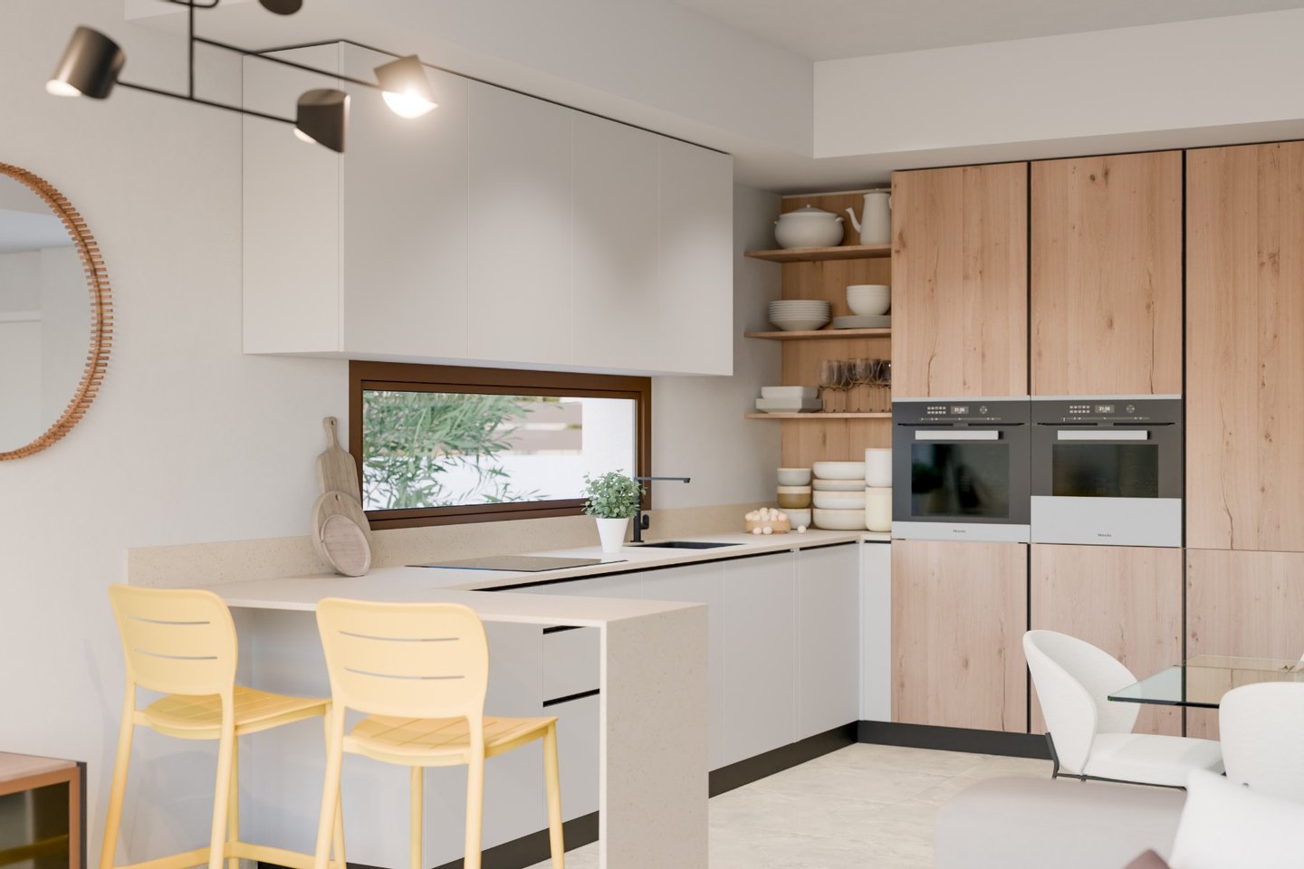 Die Wohnungen verfügen über eine Klimaanlage, Fußbodenheizung in den Bädern, Elektrogeräte in der Küche, Einbauschränke in allen Schlafzimmern, elektrische Rollläden, ein Domotik-System, eine Alarmanlage, einen privaten Swimmingpool (6x3 Meter) und einen privaten Parkplatz auf dem Grundstück.