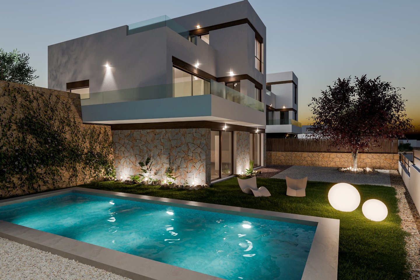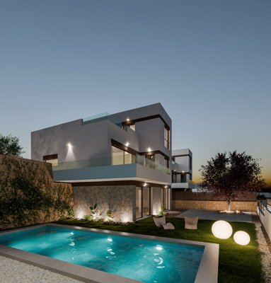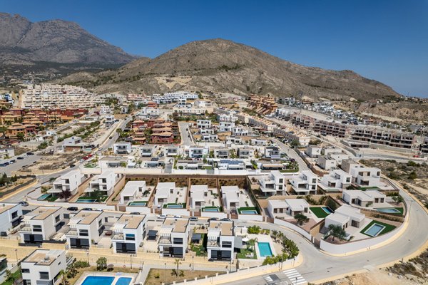 Ein brandneues Projekt moderner freistehender Villen mit 3 Schlafzimmern, 2 Bädern und privatem Swimmingpool in Balcón de Finestrat (Alicante), einer privilegierten natürlichen