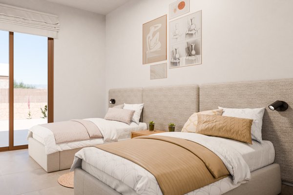 Dieses Projekt besteht aus zwei verschiedenen Villenmodellen. Dieses besondere Modell bietet 3 Schlafzimmer und ist über zwei Etagen verteilt, um die herrliche Aussicht auf die natürliche Umgebung und das Mittelmeer zu genießen. Die Innenaufteilung besteht aus einer Eingangshalle, die zum geräumigen offenen Wohn- und Essbereich mit großen Terrassentüren auf beiden Seiten führt, die Zugang zur Terrasse auf der Vorder- und Rückseite des Anwesens bieten, einer voll ausgestatteten modernen Küche im amerikanischen Stil, im Erdgeschoss gibt es auch zwei Doppelschlafzimmer, beide mit Terrassentür Zugang zu einer der Terrassen und ein separates Gästebad. Die interne Treppe führt Sie in den ersten Stock mit dem Hauptschlafzimmer und en-suite Badezimmer, das Schlafzimmer hat Zugang zu der großen Sonnenterrasse von 36m2, die auch von der ersten Etage Flur zugegriffen werden kann. Einige der Villen verfügen über ein geräumiges Kellergeschoss, um zusätzlichen Wohnraum zu schaffen, in dem Sie ein viertes Schlafzimmer, ein Spielzimmer, einen zweiten Wohnbereich usw. einrichten können, je nach Ihren Bedürfnissen und Anforderungen.