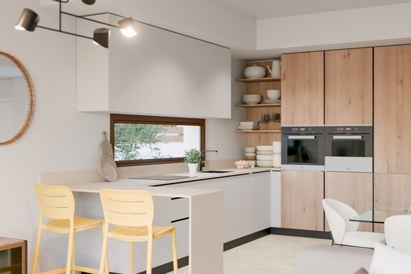 Zeitgenössische Villen, die moderne Linien mit traditionellen Elementen wie Stein an der Fassade und Holz kombinieren und so die Wärme der traditionellen Bauweise vermitteln. Die Verteilung dieser Häuser trägt dazu bei, das Sonnenlicht den ganzen Tag über zu nutzen, und sie sind so gelegen, dass sie ein Maximum an Privatsphäre bieten.