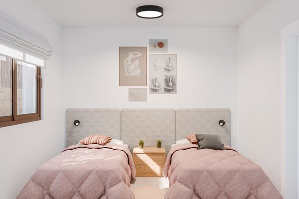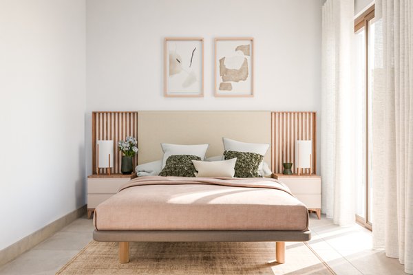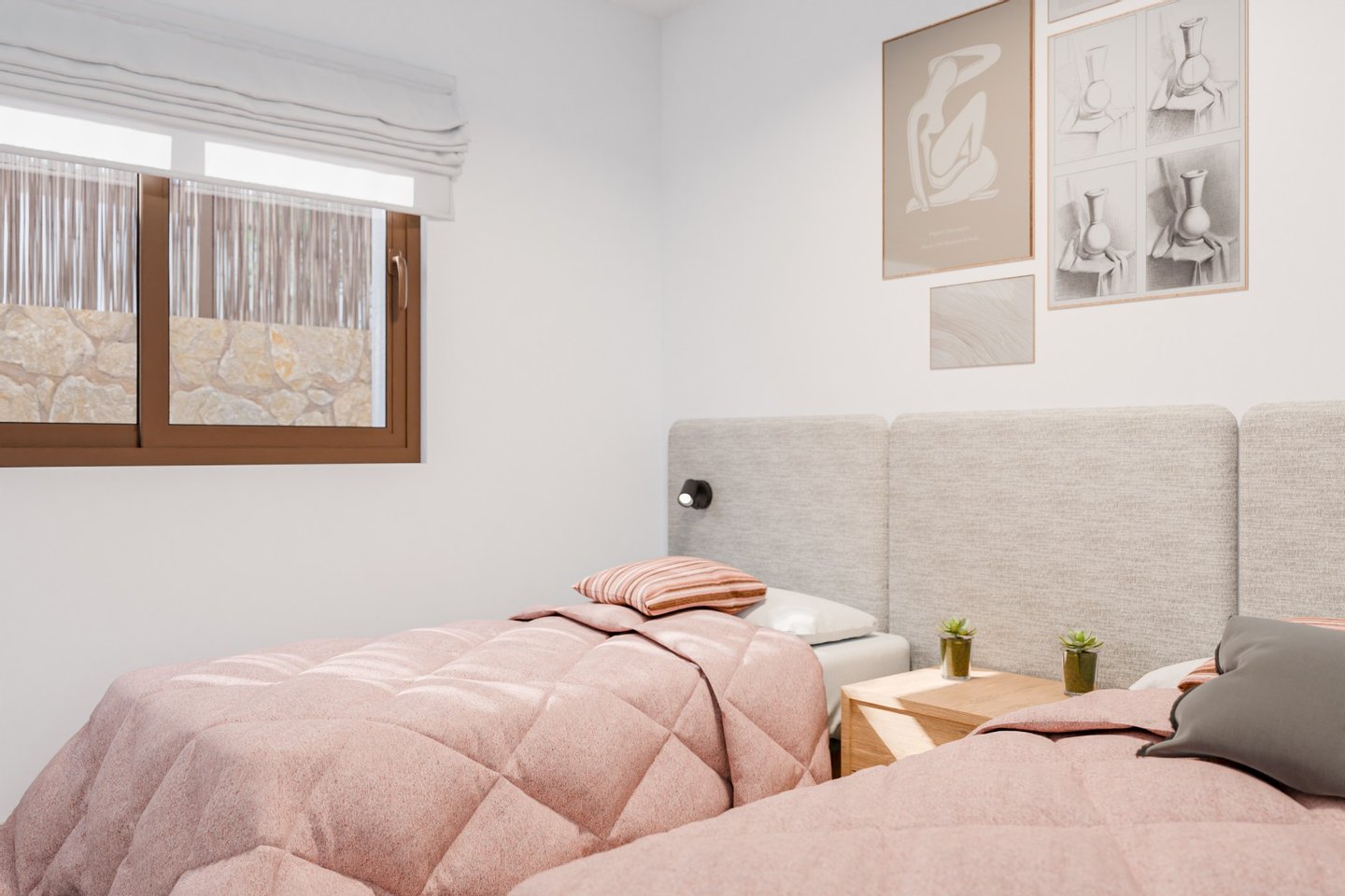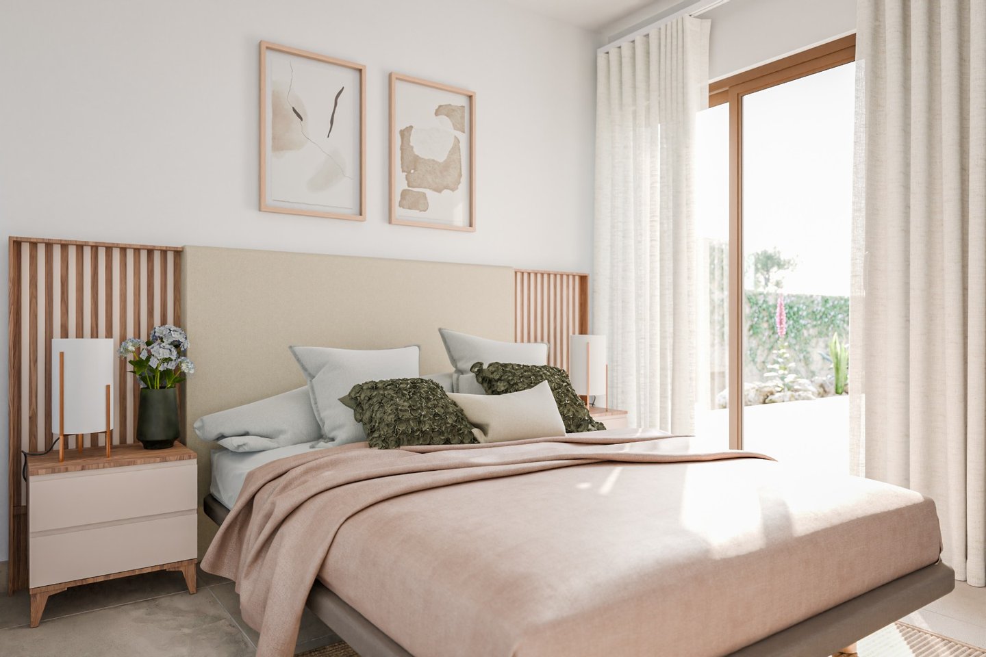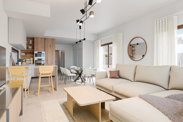 Dieses Projekt besteht aus zwei verschiedenen Villenmodellen. Dieses besondere Modell ist auf einer Ebene verteilt und die Innenaufteilung umfasst einen Eingangsbereich, der zum hellen und geräumigen offenen Wohn- und Essbereich mit mehreren großen Fenstern im gesamten Wohnbereich führt, die viel natürliches Licht schaffen und Zugang zur Terrasse bieten, eine voll ausgestattete moderne Küche im amerikanischen Stil, ein Hauptschlafzimmer mit eigenem Bad und Terrassentür mit Zugang zur Hauptterrasse, zwei weitere Doppelschlafzimmer und ein separates Gästebad. Die Immobilie verfügt über einen großen Außenbereich mit Terrassen und einem Garten, der zum Entspannen rund um den privaten Swimmingpool einlädt, sowie über Bereiche, in denen Gäste im Freien speisen können.