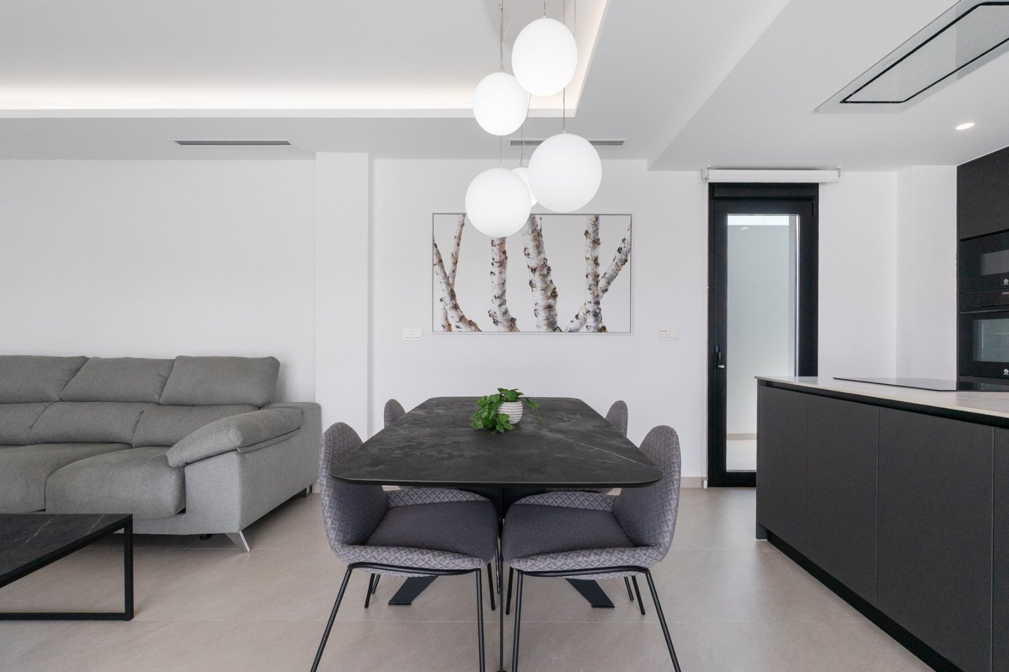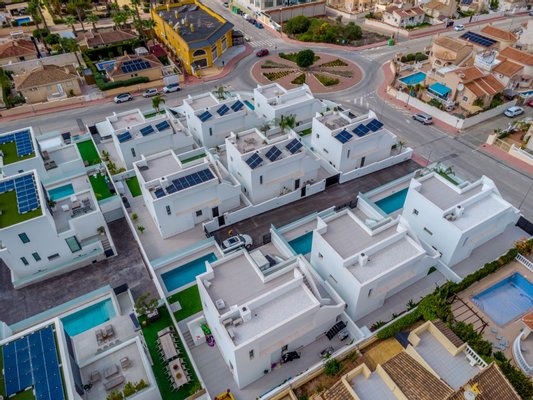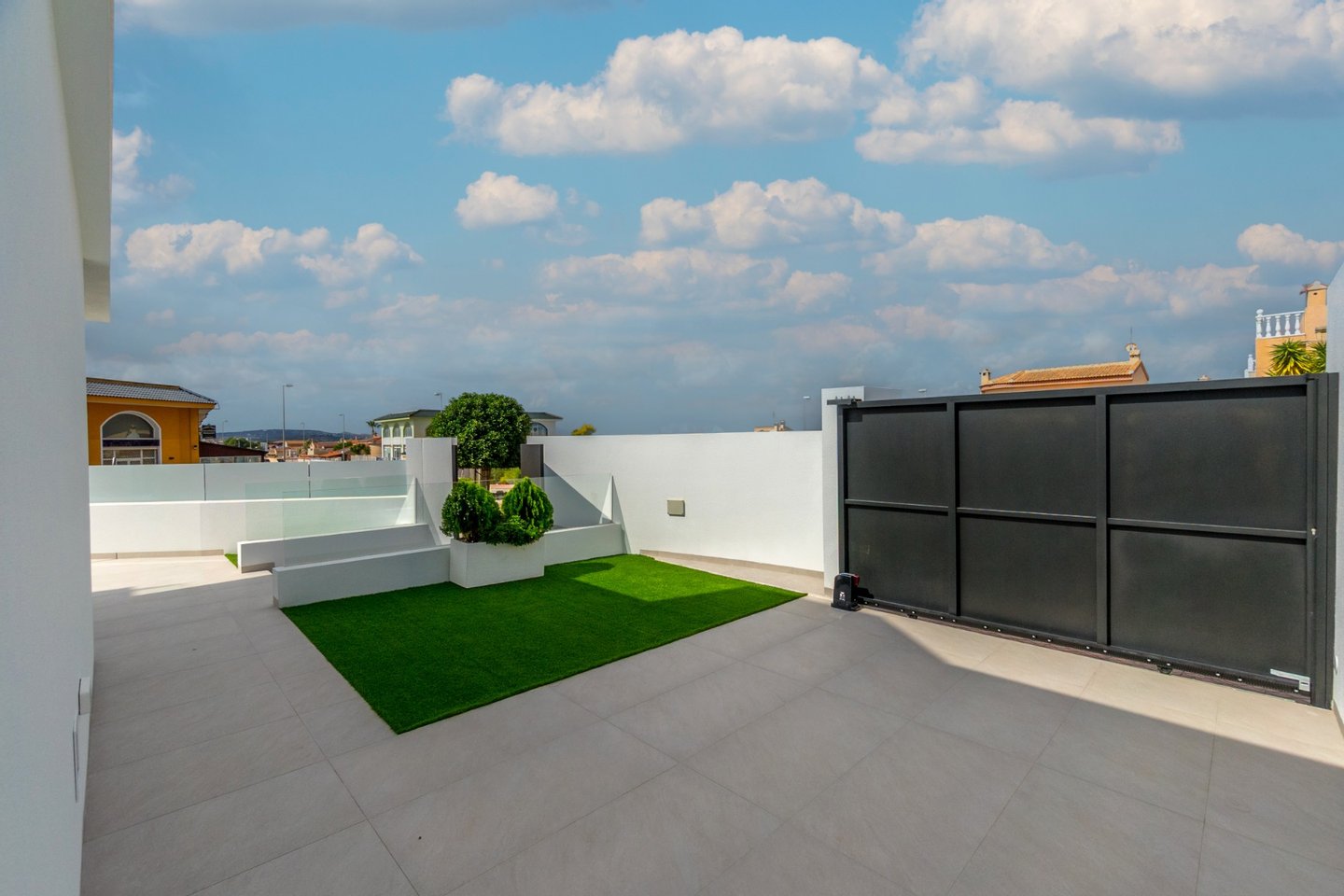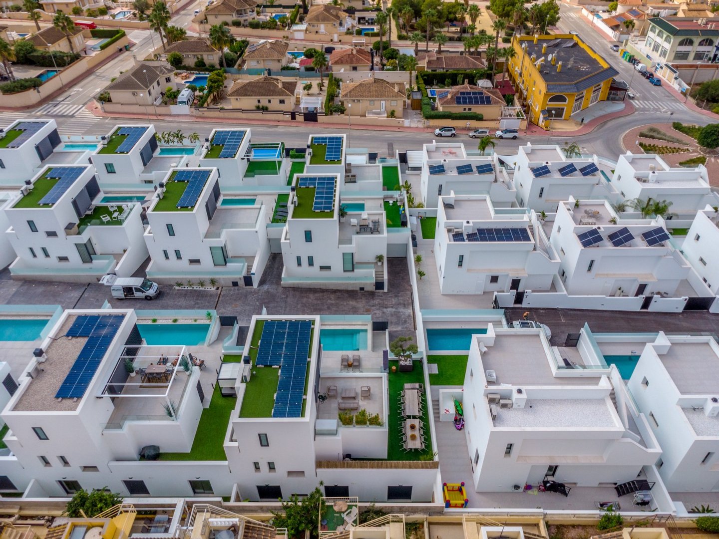 VERPASSEN SIE ES NICHT! - LETZTE VILLA VERFÜGBAR Ein brandneues, exklusives Projekt mit 9 freistehenden Villen mit 3 Schlafzimmern und privatem Swimmingpool in dem charmanten Dorf Benimar - Rojales (Alicante), in der Nähe der schönen Strände der Costa Blanca und der renommierten Golfplätze, eine perfekte Wahl für diejenigen, die die Freuden des Lebens in einer außergewöhnlichen Umgebung genießen möchten. Diese zeitgenössisch gestalteten Villen sind auf zwei Ebenen mit 3 Schlafzimmern und 3 Bädern gebaut, wobei Komfort und Eleganz im Vordergrund stehen. Jedes Haus bietet eine Wohnfläche von 136 m2 mit großen Terrassen im Erdgeschoss und im ersten Stock sowie optional eine private Dachterrasse von 38 m2, die reichlich Platz im Freien bietet, um das mediterrane Klima zu genießen. Die durchdachte Aufteilung und die Ausstattung sorgen für ein modernes und funktionales Leben und gewährleisten einen hohen Wohnstandard in einer ruhigen und sicheren Umgebung.  Die Innenaufteilung besteht aus einem hellen und geräumigen offenen Wohn- und Essbereich mit großen Terrassentüren, die Zugang zur Terrasse und zum Garten bieten, einer voll ausgestatteten modernen Küche im amerikanischen Stil, einer separaten Waschküche, einem Doppelschlafzimmer und einem separaten Gästebad im Erdgeschoss. Die Innentreppe führt Sie in den ersten Stock, wo sich die Master-Suite mit einem großen Schlafzimmer mit Eckfenstern, en-suite Badezimmer und begehbarem Kleiderschrank / Ankleidebereich befindet. Ein weiteres Doppelschlafzimmer mit en-suite Badezimmer, das Master-Schlafzimmer und der Flur bieten beide Zugang zur großen Sonnenterrasse von 23m2. Die optionale Dachterrasse wäre über eine Außentreppe auf der Sonnenterrasse im ersten Stock erreichbar.  Die Immobilien sind mit hochwertigen Oberflächen gebaut und kommen einschließlich Vorinstallation für die Klimaanlage, Vorinstallation für Sonnenkollektoren, Fußbodenheizung in den Badezimmern, Einbauschränke in allen Schlafzimmern, elektrische Rollläden in den Schlafzimmern, Video-Gegensprechanlage, angelegten Gärten, privaten Swimmingpool (7x3m), privaten Parkplatz auf dem Grundstück und die Installation einer Ladestation für ein Elektrofahrzeug.  Benimar ist eine beliebte Wohngegend, in der viele verschiedene Nationalitäten leben und die sich in der Nähe der Stadt Benijofar befindet. Benimar ist fußläufig zu allen Annehmlichkeiten zu erreichen, am Eingang der Urbanisation gibt es zwei Einkaufszentren mit einer Reihe von Bars, Restaurants, Geschäften, etc. zur Auswahl. Auch der Aqua Park in Rojales und der Golfplatz La Marquesa sind nur wenige Gehminuten entfernt. Nur 10 Autominuten entfernt liegen die schönen Strände von Guardamar del Segura mit ihren 11 Kilometern goldenem Sand, kristallklarem Mittelmeerwasser und einer malerischen, von Palmen gesäumten Promenade. Benimar verfügt über eine hervorragende Verkehrsanbindung und Zugang zu den wichtigsten Straßennetzen, die das Reisen im In- und Ausland bequem machen, nur 35 Minuten vom Flughafen Alicante und 45 Minuten vom Flughafen Corvera (Murcia) entfernt.