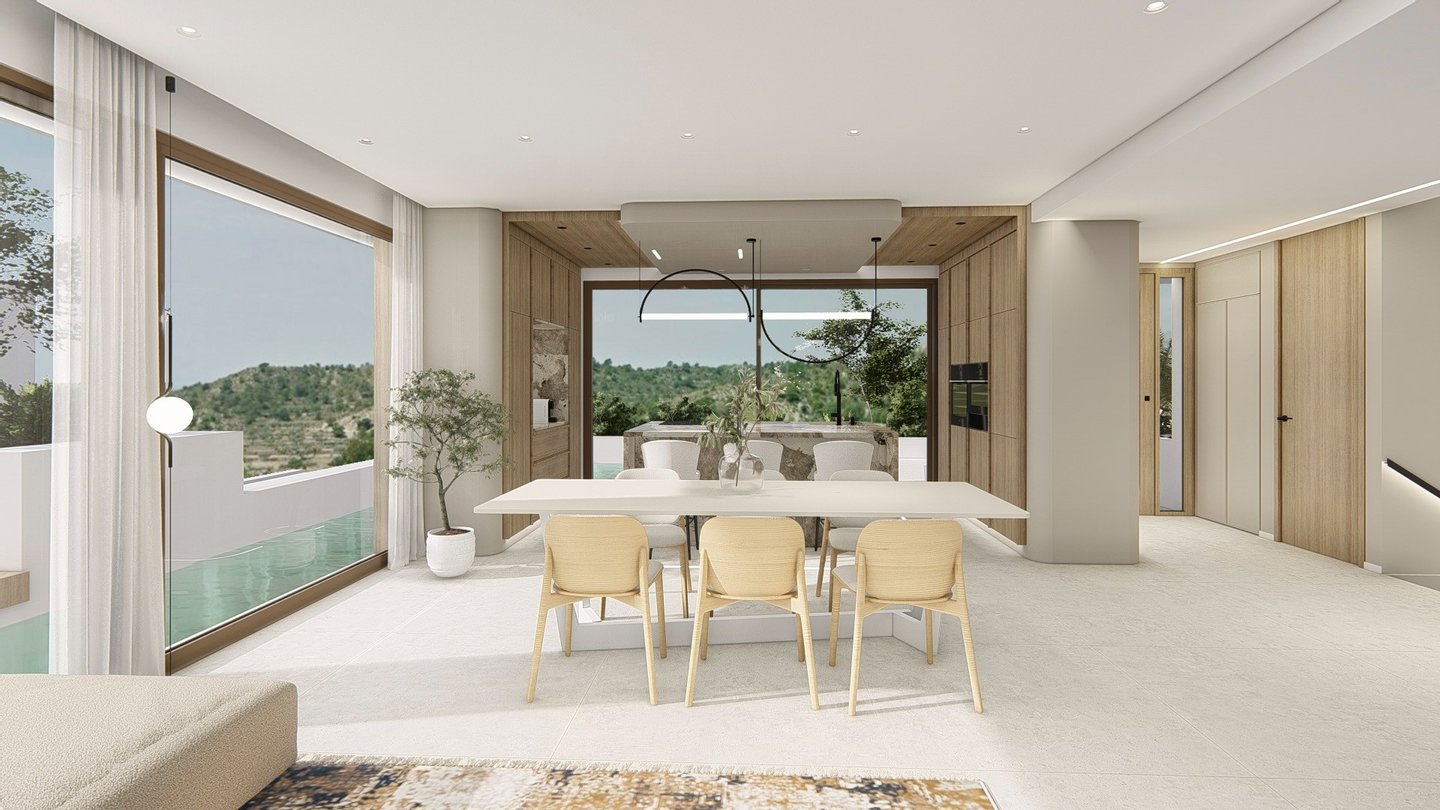 Eine brandneue Anlage, bestehend aus 11 einzigartigen, luxuriösen, freistehenden Villen im zeitgenössischen Stil mit 3 Schlafzimmern und privatem Swimmingpool in Finestrat (Alicante), nur 8 Autominuten von den schönen Sandstränden in Benidorm, Freizeit- und Einkaufszentren entfernt.