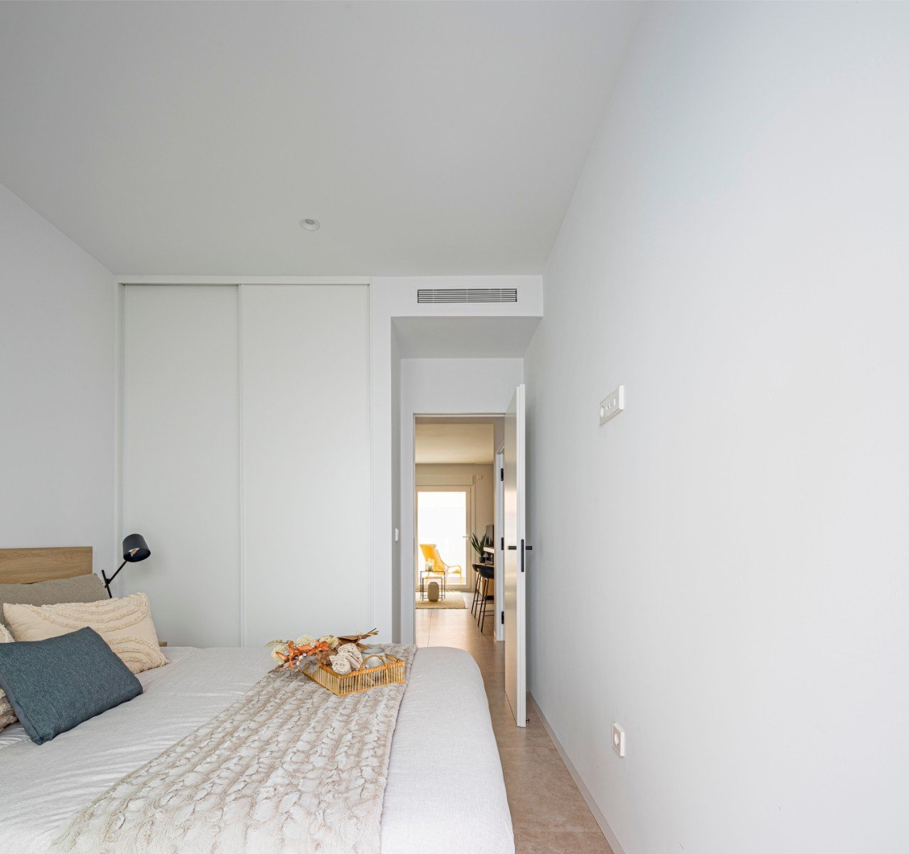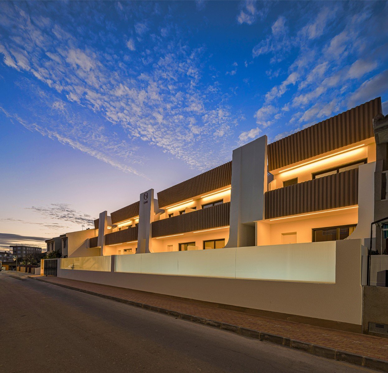 Eine erlesene Wohnanlage mit nur 12 Wohnungen mit 2 Schlafzimmern, die alle über einen großen Gemeinschaftsgarten mit Swimmingpool verfügen. Die Anlage befindet sich in San Pedro del Pinatar (Murcia) in der Nähe aller Annehmlichkeiten und nicht weit entfernt von den schönen Stränden und den "Salinas de San Pedro". Diese neuen Wohnungen verfügen über einen Gehweg zwischen den einzelnen Gebäuden, mit Zugang zum Gemeinschaftsgarten und einem großen Gemeinschaftspool auf der Vorderseite, der den Bewohnern zur Verfügung steht. Der Komplex verfügt über 2-Schlafzimmer-Wohnungen, die entweder im Erdgeschoss mit großer Terrasse oder im Obergeschoss mit Terrasse und großer privater Sonnenterrasse auf dem Dach angeboten werden.  Die Innenausstattung besteht aus einem geräumigen Wohn- und Essbereich mit Terrassentüren, die Zugang zur Terrasse bieten, einer voll ausgestatteten amerikanischen Küche, einem Hauptschlafzimmer mit eigenem Bad, einem weiteren Doppelschlafzimmer und einem separaten Gästebad. Die Wohnung im obersten Stockwerk verfügt über eine Außentreppe auf der Terrasse, die auf die 68 m2 große Dachterrasse führt, auf der man den ganzen Tag die Sonne genießen kann.  Die Wohnungen verfügen über eine vorinstallierte Klimaanlage, elektrische Küchengeräte (Herd, Backofen, Dunstabzugshaube, Mikrowelle, Kühl- und Gefrierschrank und Geschirrspüler), LED-Beleuchtung innen und außen, Einbauschränke in allen Schlafzimmern und einen privaten Parkplatz.  San Pedro del Pinatar ist eines der wichtigsten touristischen Ziele an der Küste von Murcia. Diese kleine Stadt am Meer ist berühmt für ihre Fischerei, ihre therapeutischen Schlammbäder und ihre fantastischen Strände. San Pedro del Pinatar liegt am Mar Menor, der natürlichen Lagune, die durch den La Manga-Strand entstanden ist, an der mediterranen Costa Calida, an der nördlichen Grenze zwischen Murcia und Alicante. Die Hauptattraktionen von San Pedro konzentrieren sich rund um den Strand und die Küste. Hier befindet sich Lo Pagan, ein lebhaftes Touristenzentrum mit allen Arten von Ferieneinrichtungen wie Hotels, Bars, Restaurants und Geschäften. Neben der langen Strandpromenade am Mar Menor liegen ausgedehnte Strände wie La Puntica oder Villananitos. In dieser wassernahen Umgebung und in Verbindung mit den Einrichtungen des Jachthafens können Sie zahlreiche Sportarten wie Segeln, Tauchen oder Windsurfen ausüben. Jeden Montag findet in San Pedro ein Wochenmarkt statt, auf dem frische Produkte und viele handwerkliche Erzeugnisse angeboten werden. Auch das Einkaufszentrum Dos Mares ist nur 10 Autominuten entfernt.