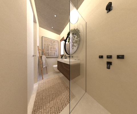 Die Villen befinden sich alle auf einer Ebene und die Innenausstattung besteht aus einem geräumigen offenen Wohn- und Essbereich mit Terrassentüren, die Zugang zur Terrasse bieten, einer voll ausgestatteten modernen Küche im amerikanischen Stil, einem Hauswirtschafts- und Abstellraum, einem Hauptschlafzimmer mit eigenem Bad und Terrassentüren, die auf die vordere Terrasse führen, zwei weiteren Doppelschlafzimmern, die jeweils Zugang zu einer kleinen privaten Terrasse haben, und einem separaten Gästebad. Eine Außentreppe auf der Rückseite des Hauses führt Sie auf die 42 m2 große Dachterrasse, auf der Sie den ganzen Tag über die Sonne genießen können.