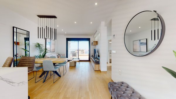 BEGRENZTE VERFÜGBARKEIT SONDERANGEBOT – INKLUSIVE MÖBELPAKET, KLIMAANLAGE, KÜCHENGERÄTEN UND BELEUCHTUNGSPAKET Ein neuer, einzigartiger Wohnkomplex mit 136 luxuriösen Apartments mit 2 Schlafzimmern, die mit hochwertigen Materialien in Los Balcones (Torrevieja) gebaut wurden. Jede Immobilie bietet einen atemberaubenden Blick auf die Laguna Rosa de Torrevieja und das Mittelmeer. Die Anlage bietet idyllische, landschaftlich gestaltete Gemeinschaftsbereiche mit 3 Swimmingpools, Whirlpools, Fitnessbereich, Paddle-Tennisplatz, Minigolf, Kinderbereich, Ladestation für Elektrofahrzeuge... und vieles mehr! Die erstklassigen Einrichtungen und Grünflächen werden es Ihnen ermöglichen, mit Ihrer Familie und Ihren Freunden die 320 Sonnentage zu genießen, die die Costa Blanca zu bieten hat. Die Wohnungen haben mehr als 131m2 mit einem geräumigen Wohn- und Essbereich und einer offenen Küche, einem Hauptschlafzimmer mit eigenem Bad, einem weiteren Doppelschlafzimmer und einem Gästebad. Sie können zwischen Wohnungen im Erdgeschoss mit zwei großen privaten Terrassen wählen, um das Klima der Costa Blanca zu genießen. Oder Wohnungen im ersten Stock von 178m2 mit 85m2 privaten Solarium mit Panoramablick auf die Laguna Rosa und das Mittelmeer. Die Eigenschaften kommen einschließlich Vorinstallation für Kanal-Klimaanlage, Einbauschränke in allen Schlafzimmern, elektrische Jalousien, LED-Außenbeleuchtung und Video-Gegensprechanlage.  Los Balcones ist eine gut etablierte Gegend nur 3 km südlich der Stadt Torrevieja an der südlichen Costa Blanca, direkt neben dem großen Salzwassersee von Torrevieja. Die Bewohner von Los Balcones sind zumeist ständige Einwohner, die hier das ganze Jahr über leben, und es ist ein beliebtes Ziel aufgrund der Nähe zu vielen schönen Golfplätzen und Stränden von Torrevieja und der Orihuela Costa, die nur 3 km entfernt sind. Los Balcones verfügt über eigene Einrichtungen in der Nähe des Einkaufszentrums Filton und des neuen Geschäftszentrums Terrazas de la Lagunas mit Annehmlichkeiten wie Geschäften, Friseuren, Bars und Restaurants, etc. In der Hauptstraße finden Sie das renommierte Universitätskrankenhaus von Torrevieja und die wichtigsten Bushaltestellen, die Sie in die umliegenden Gebiete bringen. Es gibt auch einen großen Supermarkt, Apotheken und andere Annehmlichkeiten in der Umgebung. Der Flughafen Alicante oder Murcia sind beide nur 35 Autominuten entfernt.