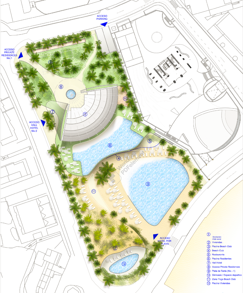 Eine einmalige Gelegenheit, in einem atemberaubenden Hotelkomplex zu kaufen, der Apartments mit 1, 2 oder 3 Schlafzimmern und fantastischen Einrichtungen direkt am Strand von Playa de Poniente in Benidorm (Alicante) bietet, mit ununterbrochenem Blick auf den Strand und das Meer. Die neue Ikone der Skyline von Benidorm, in der exklusivsten Lage der Stadt. Dieser majestätische Wolkenkratzer ist 158 Meter hoch, hat 44 Stockwerke und eine einzigartige Form, die an zwei Segel erinnert, die durch einen Mast verbunden sind. Die Dünen werden nach mediterranem Vorbild gestaltet und ergänzen die Landschaft des Weststrandes. Privatwohnungen und Hotel: Von den 100 geplanten Wohnungen wird ein Teil zum Kauf angeboten, so dass Sie zu den wenigen Privilegierten gehören können, die eine Wohnung in diesem Gebäude besitzen und für immer direkt am Meer wohnen. Der andere Teil des Gebäudes wird auch "Das Hotel" sein. Eine Oase, in der Sie wohnen und außergewöhnliche Dienstleistungen in einer wunderschönen Umgebung direkt am Strand genießen können. Können Sie sich vorstellen, mit allen Dienstleistungen eines Hotels zu leben, ohne auf die Intimität und Persönlichkeit Ihres eigenen Hauses zu verzichten? Die Eigentümer verfügen über einen exklusiven Flur, der Privatsphäre und Ruhe garantiert. Außerdem können sie alle Serviceleistungen in Anspruch nehmen und haben Zugang zum privaten Schwimmbad für die Eigentümer. Die Anlage verfügt über eine Vielzahl von Einrichtungen, um Ihnen die unglaublichsten Erfahrungen zu bieten, darunter ein Fitnessstudio, eine Sauna, ein Spa, ein Yoga- und Pilatesbereich, eine Lobby, Co-Working Spaces, Gärten, Sky Gardens, Tennis- und Padelplätze, ein Social Club, ein Restaurant und Swimmingpools.  Der beste Strandclub in Benidorm: Machen Sie sich bereit, die goldene Stunde zu erleben. Es wird ein Auditorium und einen Beach Club mit drei verschiedenen Bereichen aus Gras, Sand und Holz geben. Dieser Bereich hat einen direkten Zugang zum Strand und ermöglicht es Ihnen, den Sonnenuntergang und das mediterrane Leben zu genießen. Alle Wohnungen wurden so konzipiert, dass sie ein großes Gefühl von Geräumigkeit und Helligkeit vermitteln, so dass viel natürliches Licht in die Wohnungen fällt und die atemberaubende Aussicht optimal genutzt wird. Das Design entspricht den Kriterien der Nachhaltigkeit und Energieeffizienz, minimiert die Auswirkungen auf die Umwelt und reduziert den Energieverbrauch, mit LEED- oder ähnlichen Zertifizierungen. Die Grundrisse der Wohnungen bestehen aus einem Eingangsflur, der zum hellen und offenen Wohn- und Essbereich mit großer Terrassentür führt, einer voll ausgestatteten amerikanischen Küche, einem Hauptschlafzimmer mit eigenem Bad, einem weiteren Doppelschlafzimmer und einem separaten Gästebad. Mit dem zweiten Schlafzimmer besteht die Möglichkeit, den Hauptwohnraum durch Entfernen der Wand zu erweitern, wenn das zweite Schlafzimmer nicht benötigt wird. Die Wohnungen verfügen über eine Klimaanlage, elektrische Küchengeräte, Einbauschränke in allen Schlafzimmern, ein zentrales Energiemanagementsystem, ein Hausautomatisierungssystem, LED-Beleuchtung und optional einen privaten Tiefgaragenstellplatz. Benidorm, das Ferienparadies an der Costa Blanca, ist international als eine der lebendigsten Städte an der spanischen Küste anerkannt und bietet ein breites und vielfältiges Angebot an Freizeitaktivitäten für alle Besuchertypen. Die weiten Sandstrände, die Berge im Hintergrund, die Gastronomie und das außergewöhnliche mediterrane Klima machen die Stadt zu einem idealen Ort, um zu leben oder seinen Urlaub zu genießen. Eine Stadt, die immer wach ist, voll von kleinen himmlischen Ecken, in die man sich zurückziehen kann. Nur 30 Minuten von der Hauptstadt Alicante entfernt, wo sich der internationale Flughafen Alicante-Elche und der Hochgeschwindigkeits-Bahnhof befinden. Wenn Sie gerne Golf spielen, finden Sie in der Nähe 4 herrliche Golfplätze sowie ein breites Angebot an Themen- und Wasserparks für die ganze Familie.