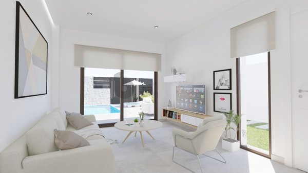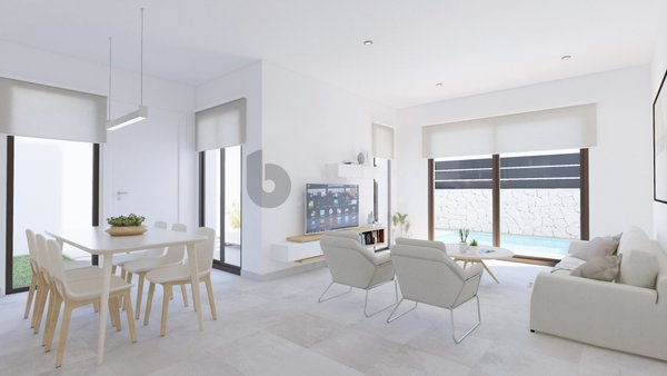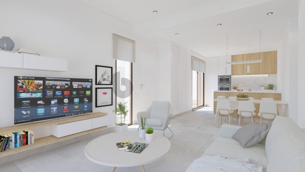 Die Wohnungen wurden in einem zeitgenössischen Stil mit allen modernen Qualitäten und Ausstattungen entworfen. Das Innere der Wohnungen besteht aus einem geräumigen, offenen Wohn- und Essbereich mit Terrassentüren, die Zugang zur Terrasse bieten, einer voll ausgestatteten, modernen Küche im amerikanischen Stil, einem Hauptschlafzimmer mit eigenem Bad und Terrassentür zur Terrasse, einem weiteren Doppelschlafzimmer, alle Schlafzimmer mit Einbauschränken und einem separaten Gästebad. Die Wohnungen im obersten Stockwerk verfügen über eine Außentreppe auf der Terrasse, die zu einer 50 m2 großen Dachterrasse führt, auf der man den ganzen Tag die Sonne genießen kann. Der optionale Swimmingpool befindet sich im Garten der Erdgeschosswohnungen und auf der Dachterrasse der Dachgeschosswohnungen. Jede Wohnung hat auch ihren eigenen privaten Parkplatz.