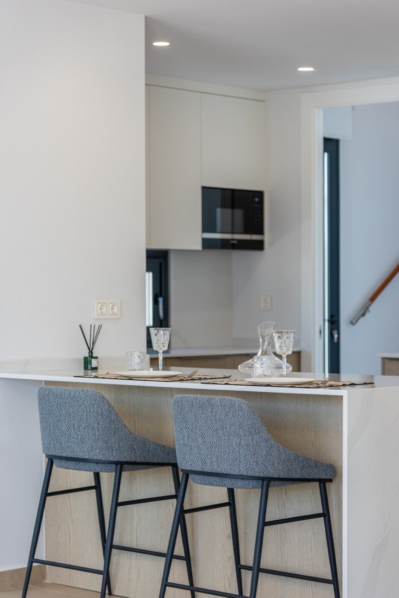 Die Eigenschaften kommen einschließlich Vorinstallation für die Klimaanlage, Fußbodenheizung in den Badezimmern, Einbauschränke in allen Schlafzimmern, Innen- und Außenbeleuchtung, elektrische Jalousien, und einen privaten Parkplatz auf dem Grundstück mit einem motorisierten Tor.