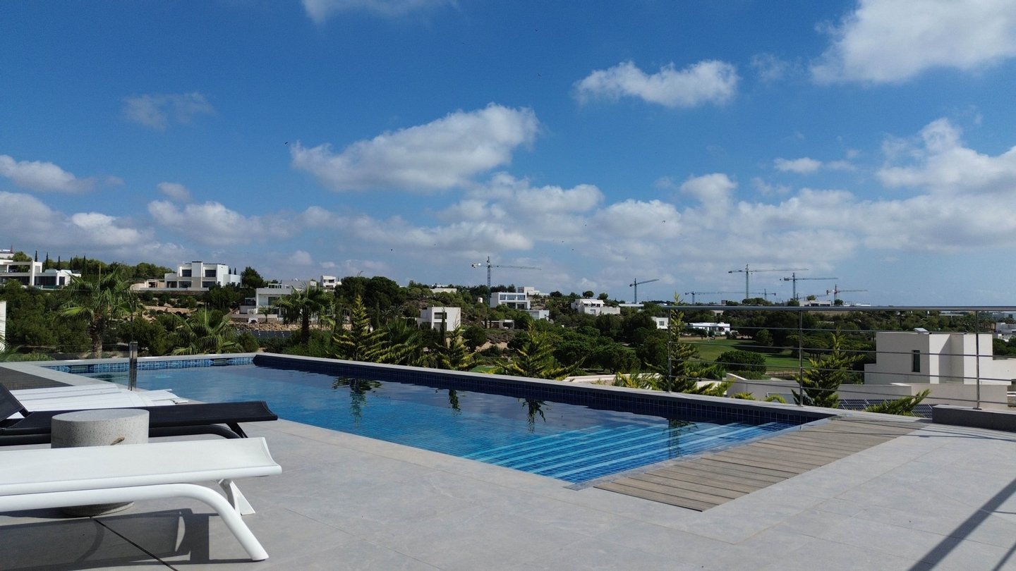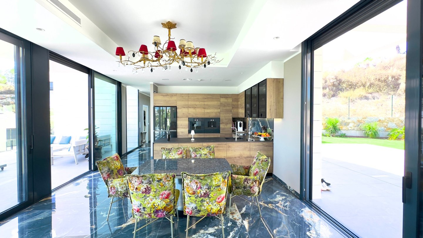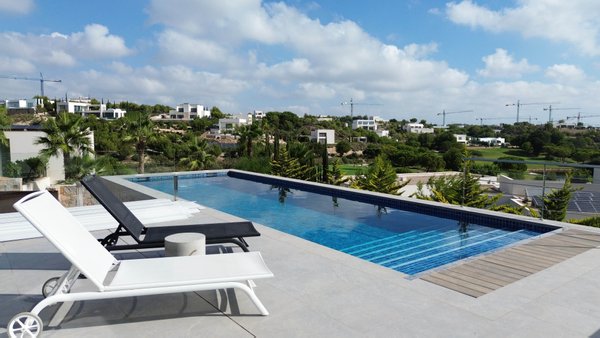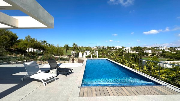 Luxuriöse freistehende Villa in der Wohnanlage Madroño Las Colinas Golf mit 4 Schlafzimmern, 3 Bädern, Kinoraum, Garage, Keller und privatem Pool mit atemberaubendem Blick auf den Golfplatz. Private Lage in der 2. Linie zum Golfplatz. Eröffnen Sie einen 180-Grad-Blick von einer großzügigen Terrasse im Erdgeschoss sowie zusätzlichen Terrassen im Obergeschoss. Geräumiger Keller mit Kinoraum, Fitnessraum und Möglichkeit für ein 5. Schlafzimmer. Garage und Einfahrt für mehrere Autos. Moderne Küche mit Luxusgeräten von Gaggenau. Im exklusiven Golfresort Las Colinas gelegen, bietet dieses Anwesen einen großartigen Rückzugsort, um von Ihrem Heimbüro aus zu arbeiten oder mit Ihrer Familie zu entspannen. Nur wenige Minuten entfernt von allen lokalen Dienstleistungen sowie anderen Golfplätzen, weißen Sandstränden und Einkaufsmöglichkeiten.